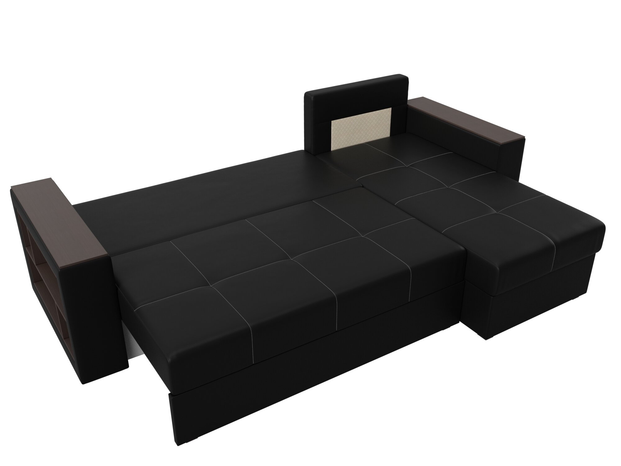 Диван угловой Дубай Лайт правый угол, экокожа, механизм еврокнижка, черный, модель 114201