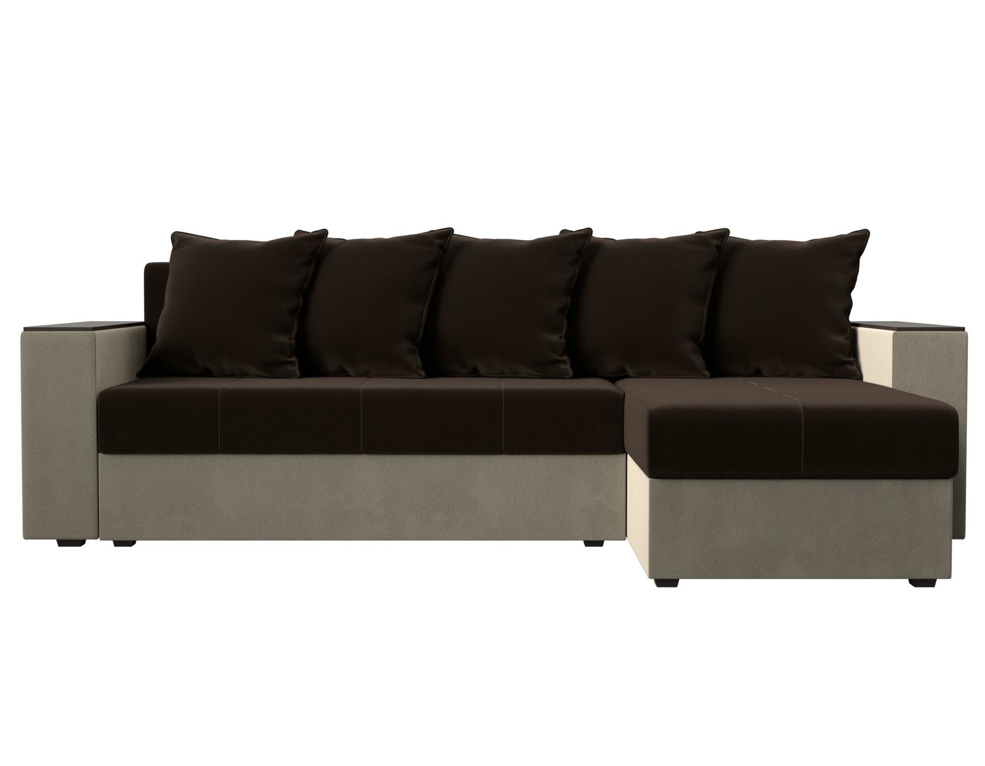 Диван угловой Дубай Лайт правый угол, велюр, механизм еврокнижка, коричневый, модель 114148