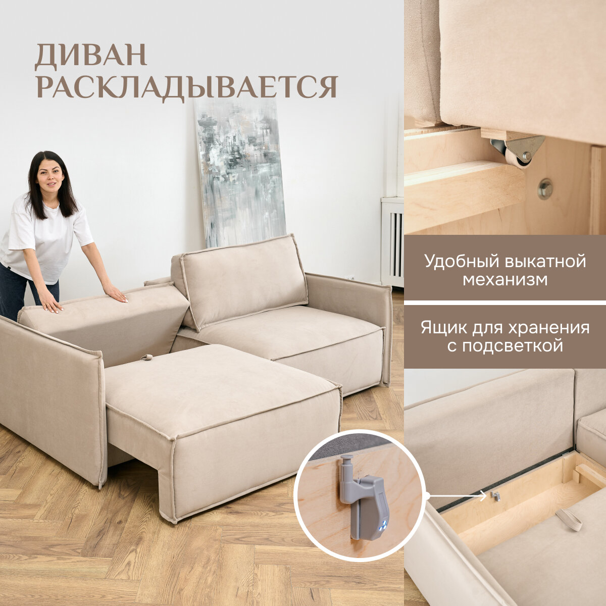 Диван-кровать Brendoss 318 диван раскладной, модульный, материал износостойкий велюр, цвет молочный