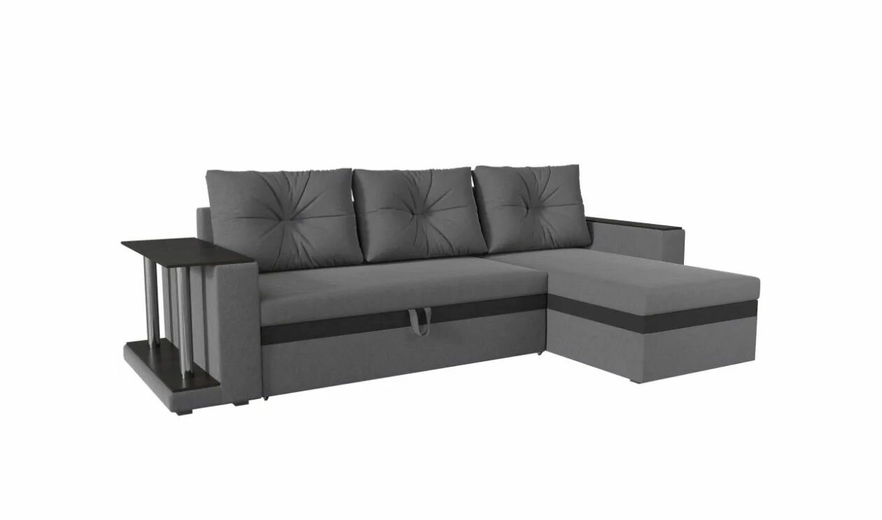 Угловой диван Атланта еврокнижка Вельвет Серый-Черн правый интересное:
