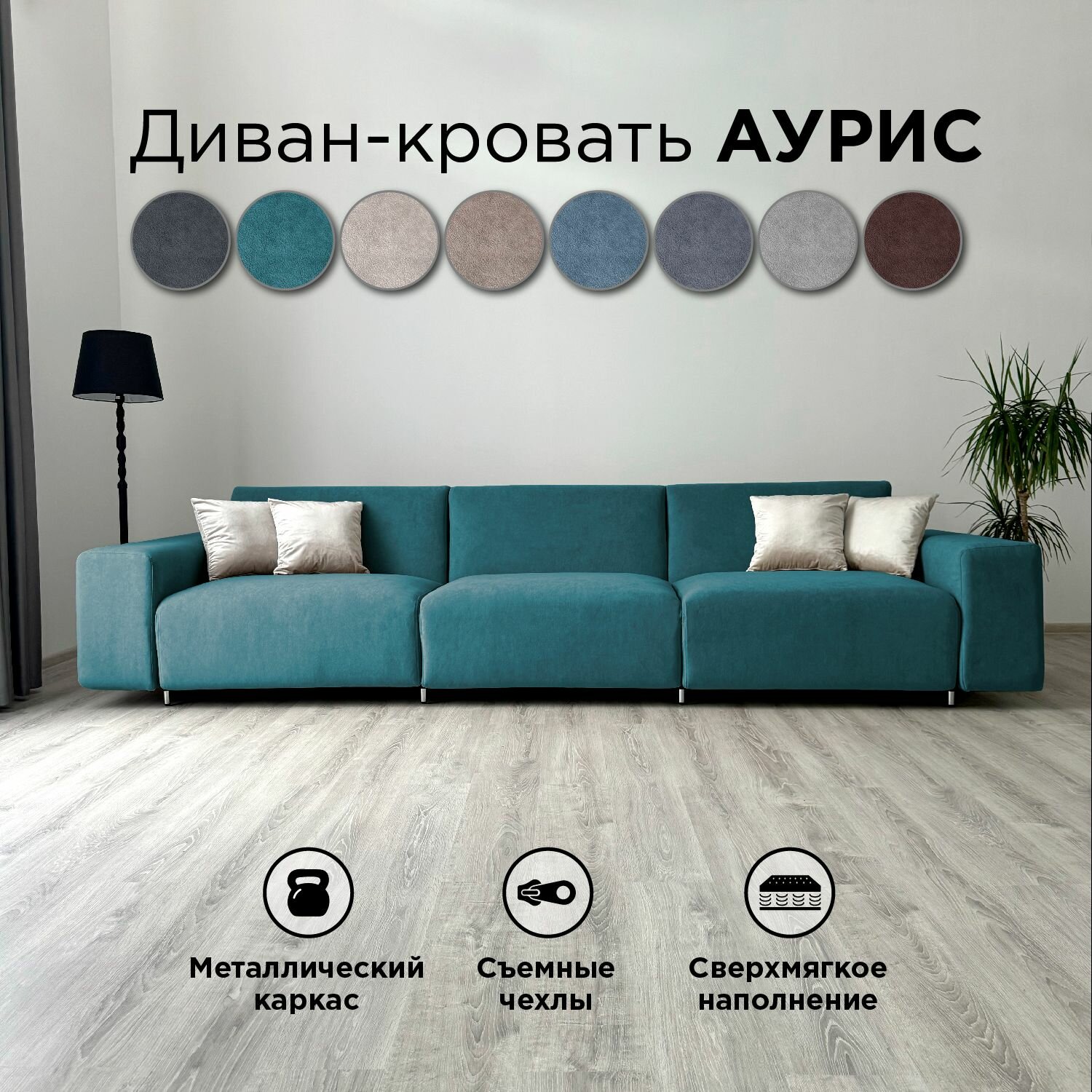 СохранитьДиван-кровать Redsofa Аурис 360 см бирюзовый Teddi. Раскладной прямой диван со съемными чехлами, для дома и офиса. интересное: