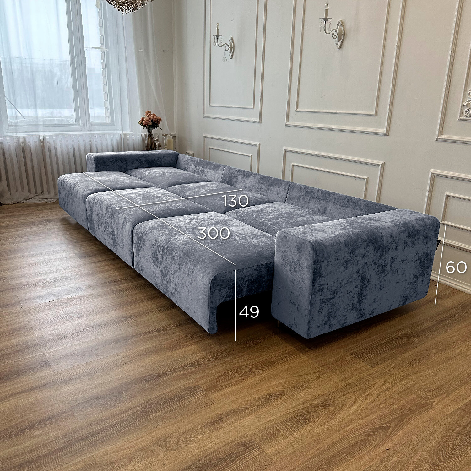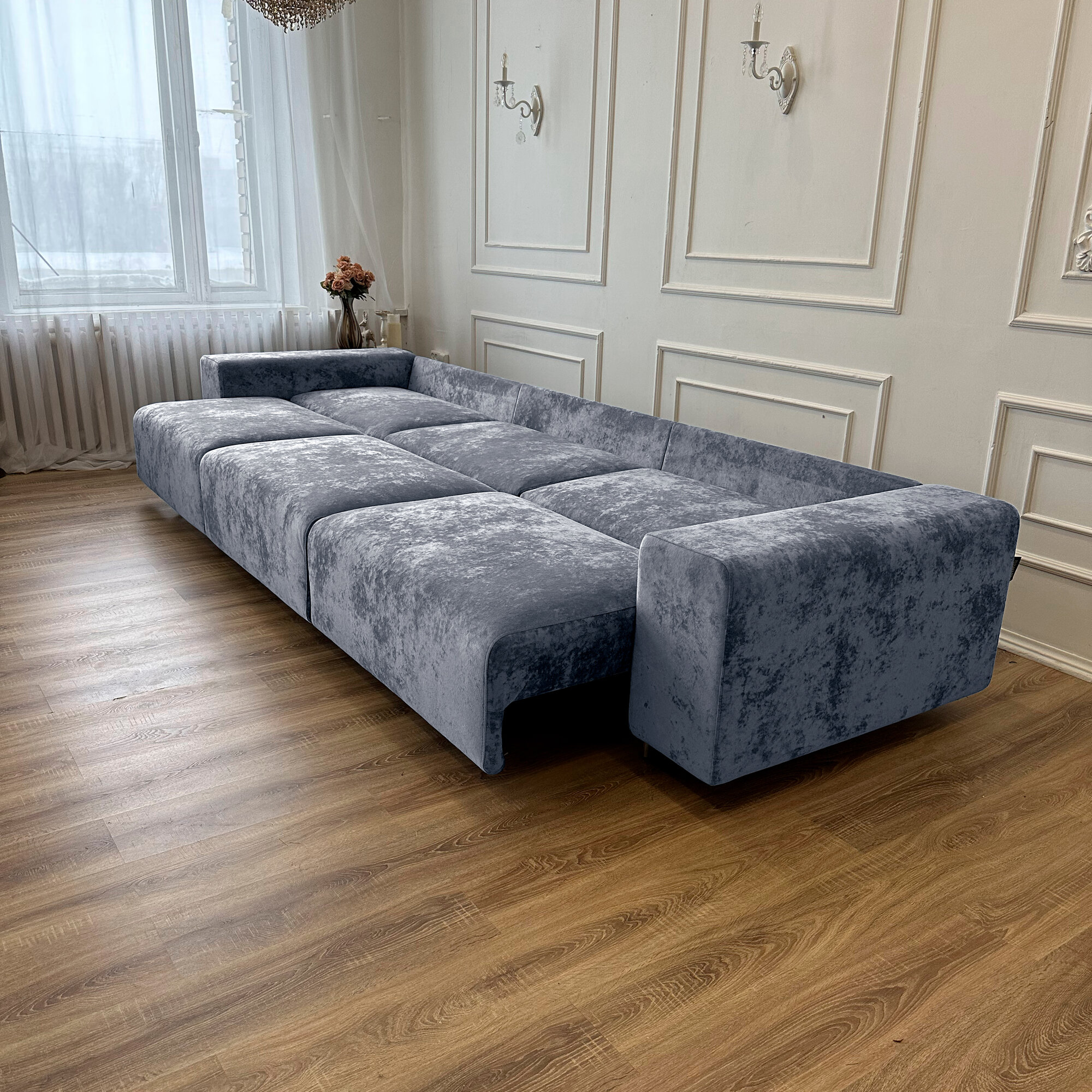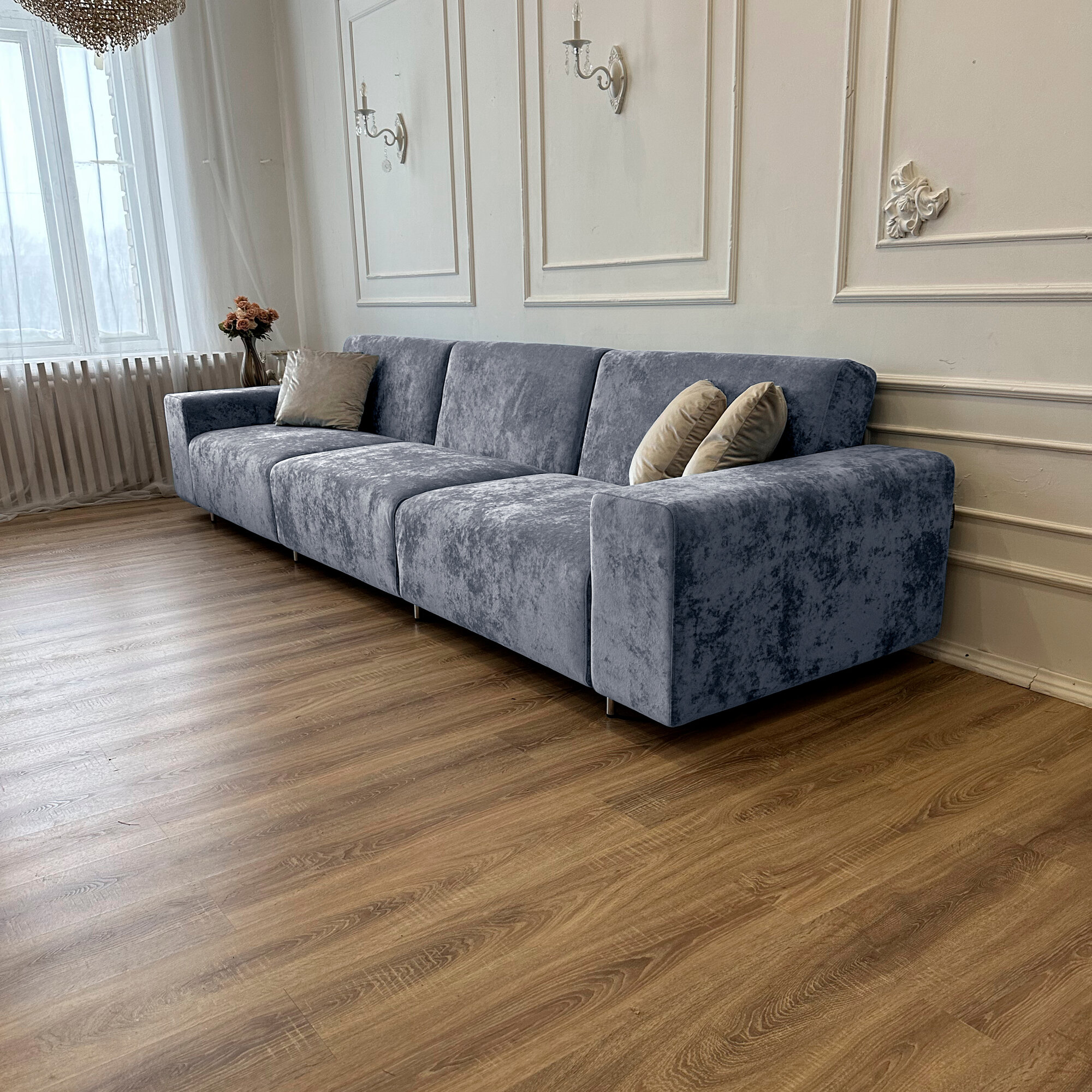 Диван-кровать Redsofa Аурис 360 см серебристый Ocean. Раскладной прямой диван со съемными чехлами, для дома и офиса.