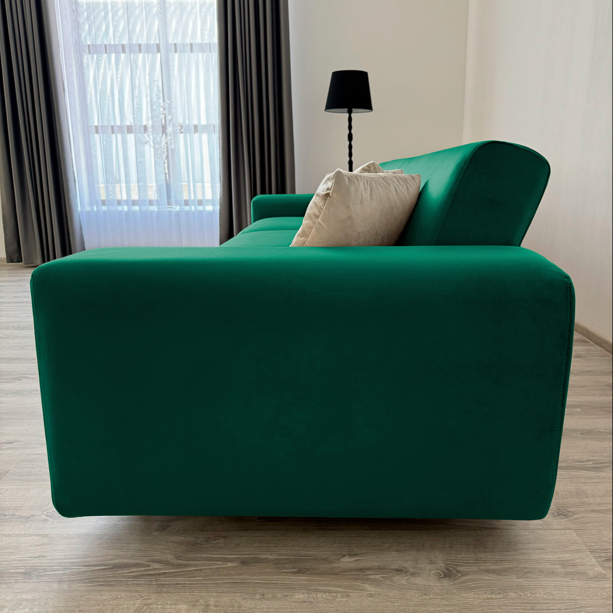 Купить Диван-кровать Redsofa Аурис 360 см изумрудный антивандальный. Раскладной прямой диван со съемными чехлами Редсофа, для дома и офиса.