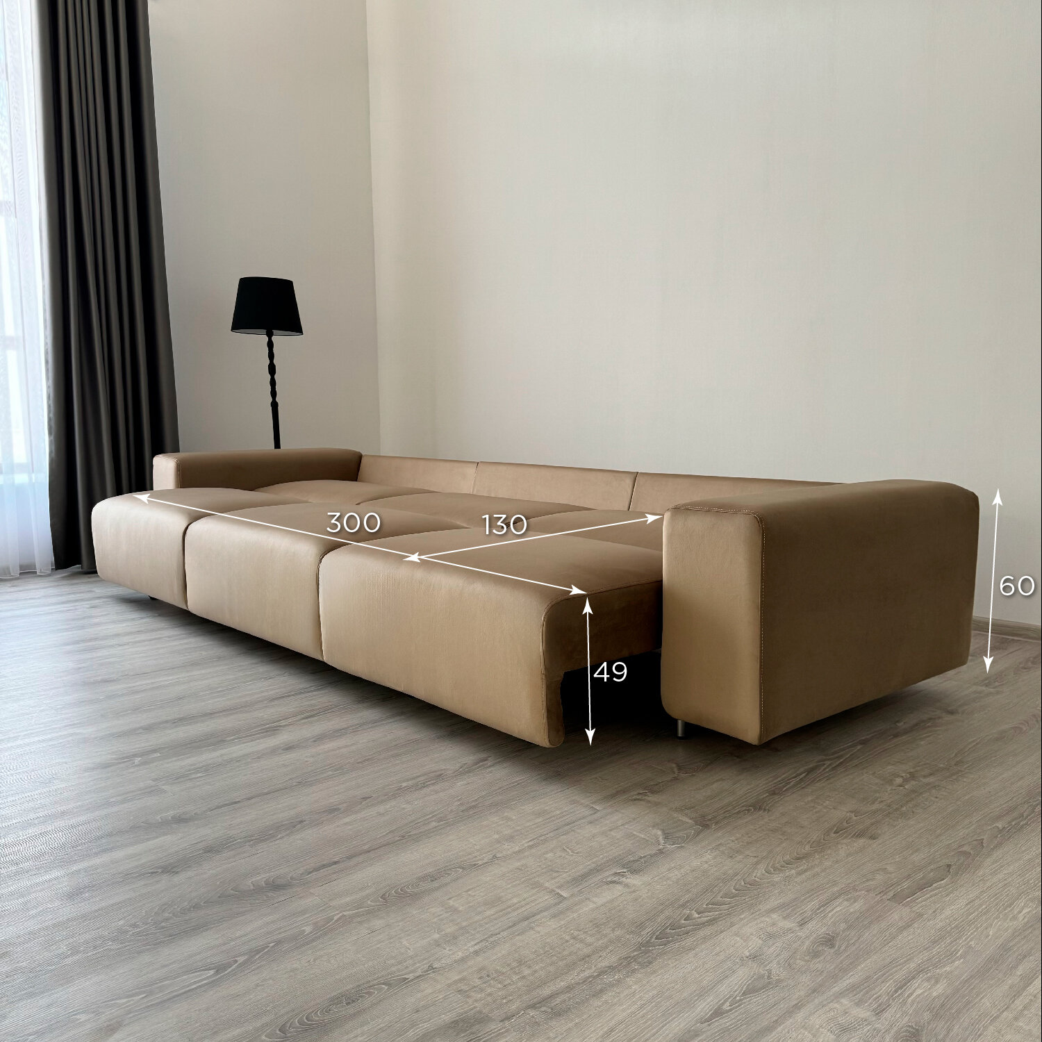 Диван-кровать Redsofa Аурис 360 см темно-бежевый Teddi. Раскладной прямой диван со съемными чехлами, для дома и офиса.