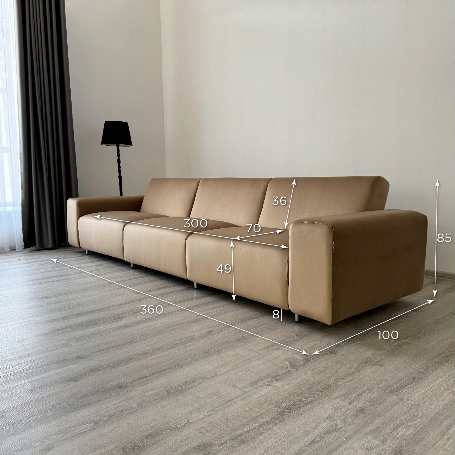 Диван-кровать Redsofa Аурис 360 см темно-бежевый Teddi. Раскладной прямой диван со съемными чехлами, для дома и офиса (Мебельный гарнитур бытового назначения)