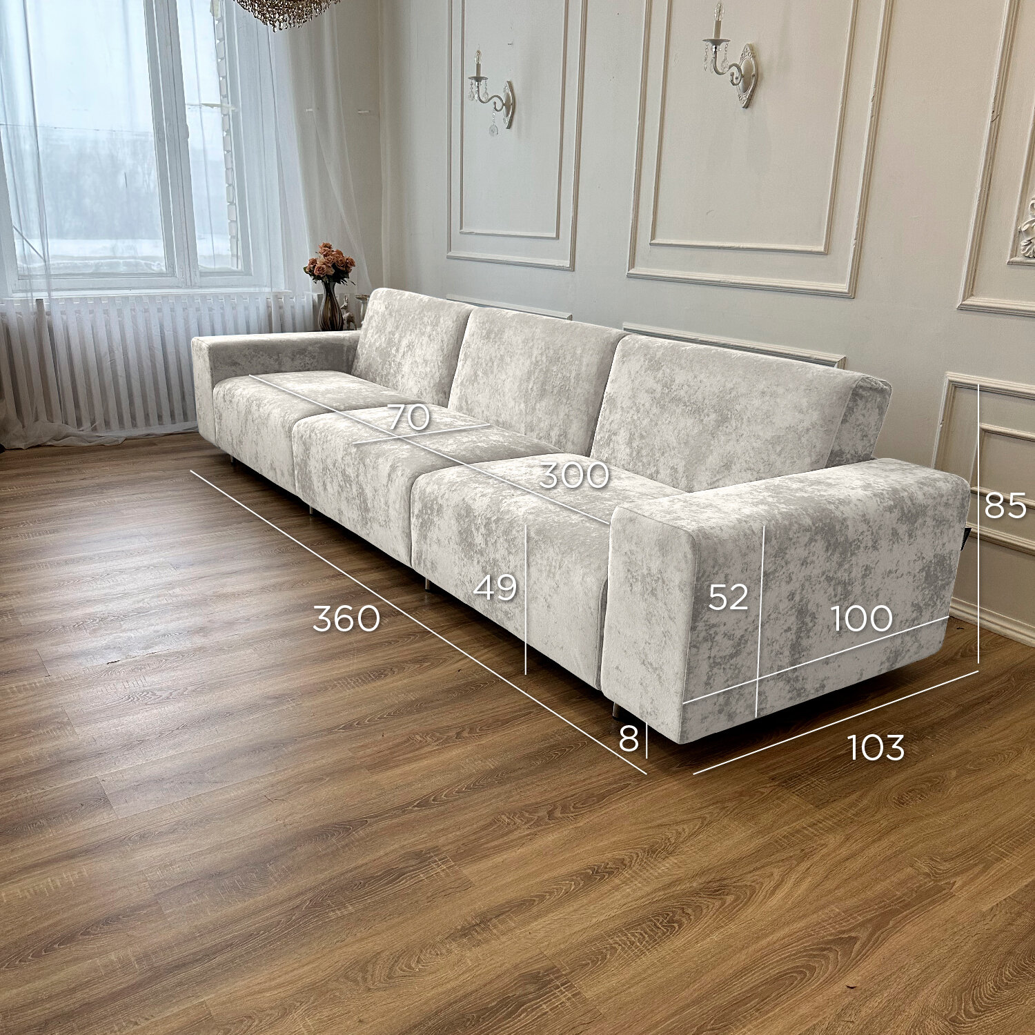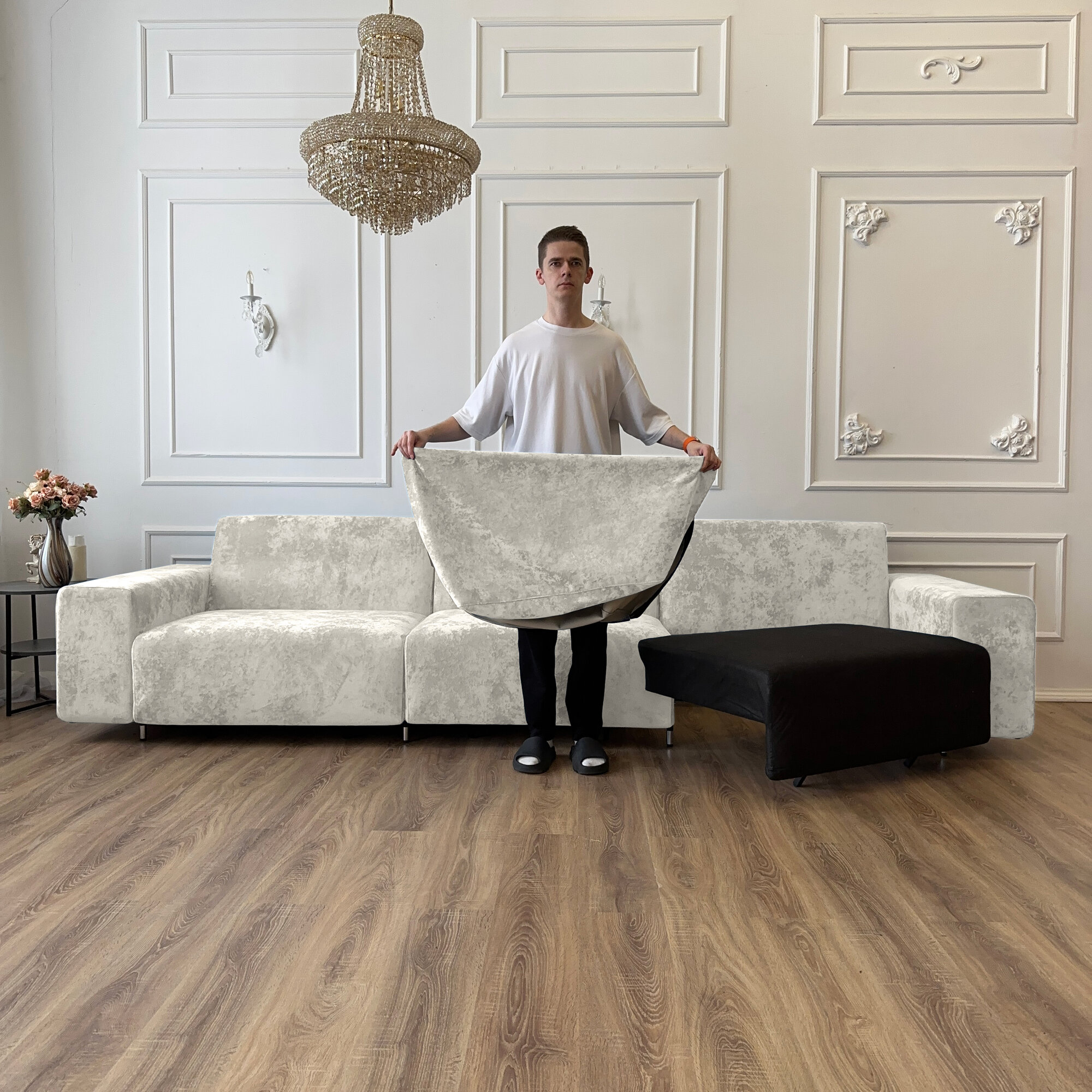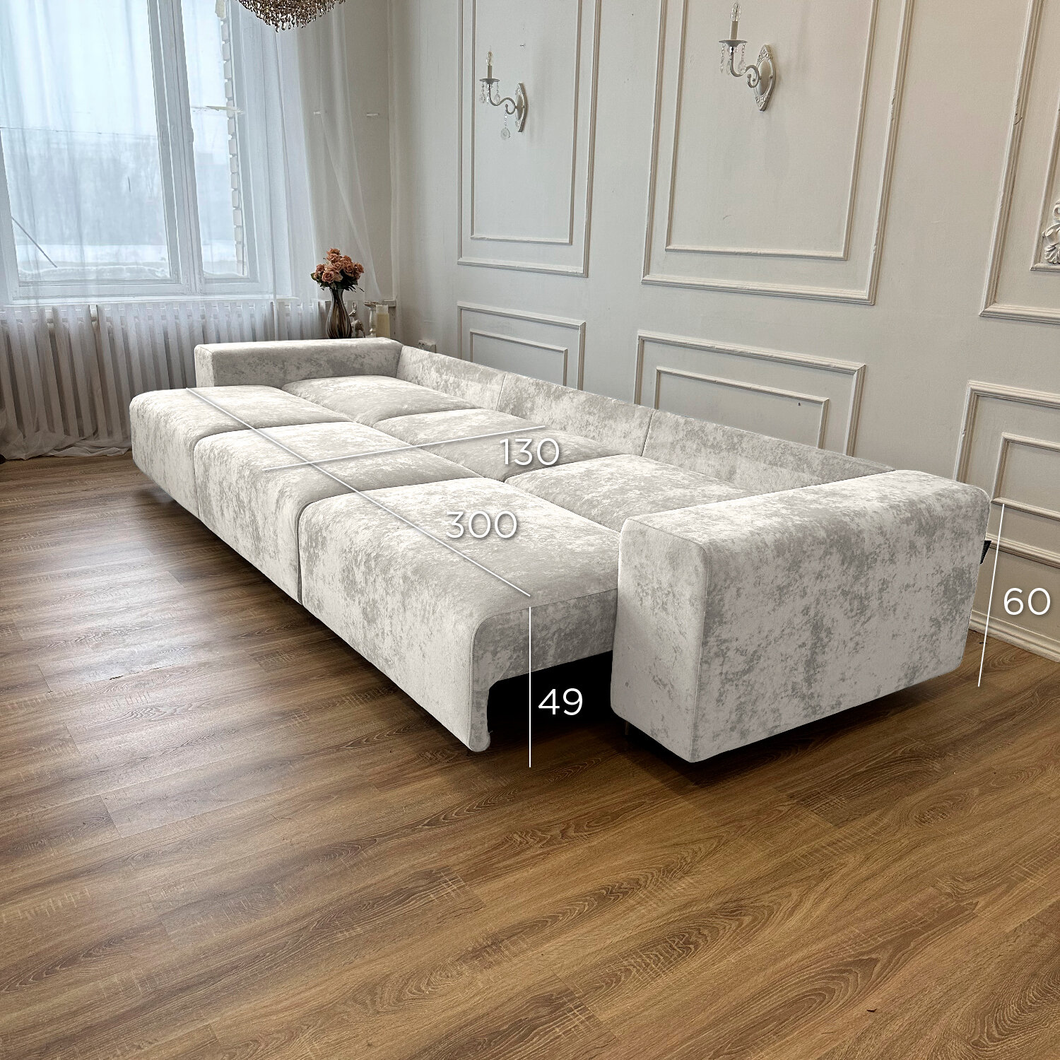 Диван-кровать Redsofa Аурис 360 см белый Букле. Раскладной прямой диван со съемными чехлами, для дома и офиса.