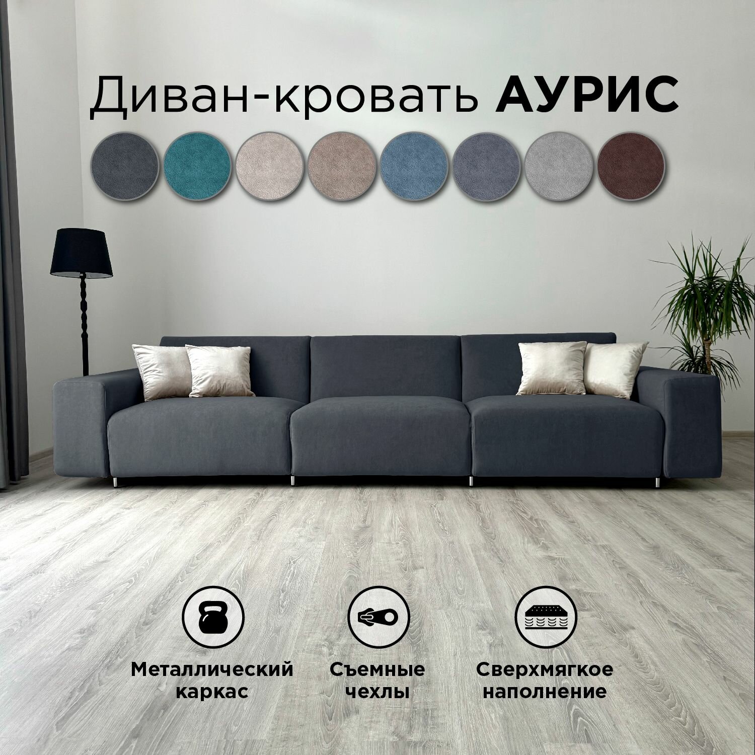 Диван-кровать Redsofa Аурис 360 см серый Ocean. Раскладной прямой диван со съемными чехлами, для дома и офиса.