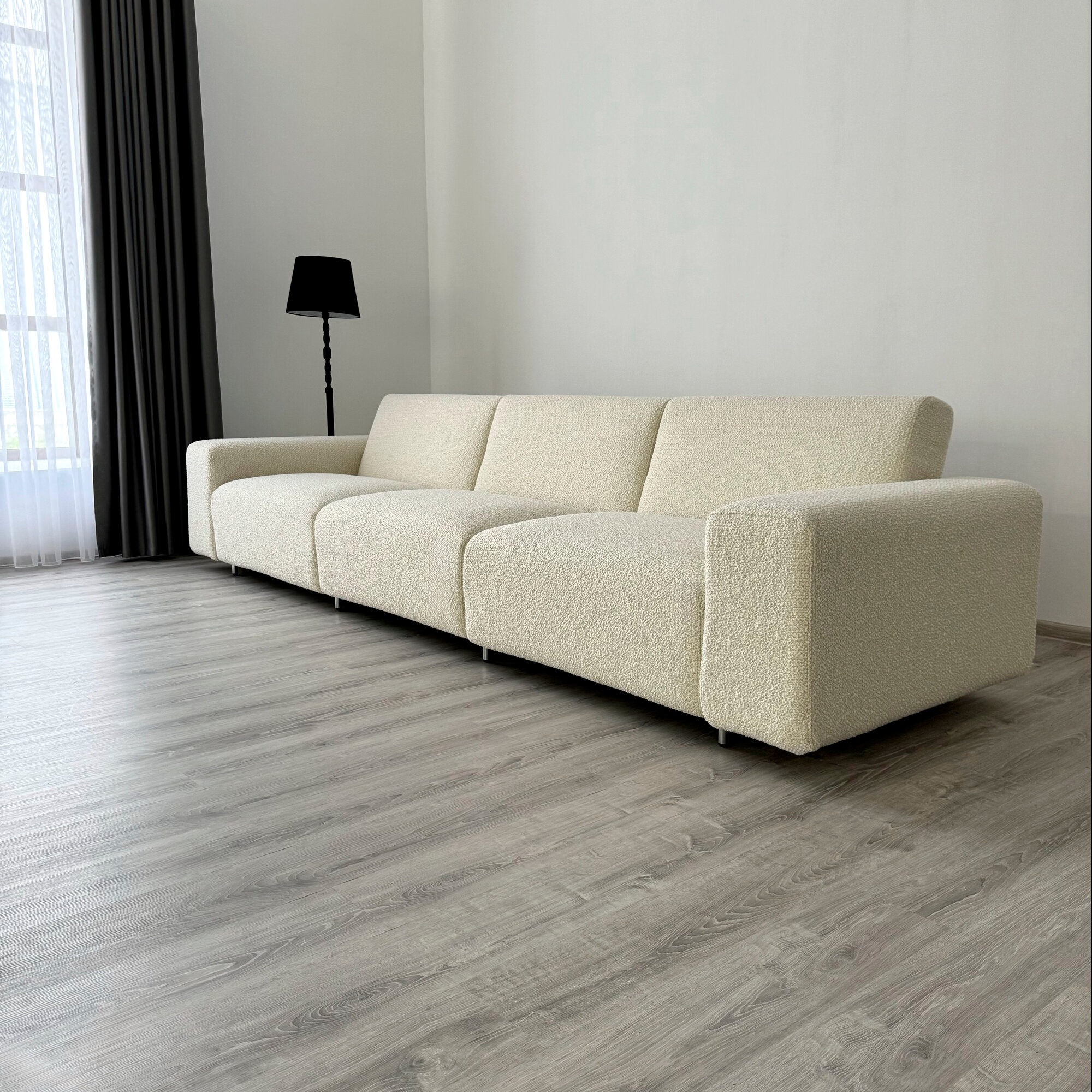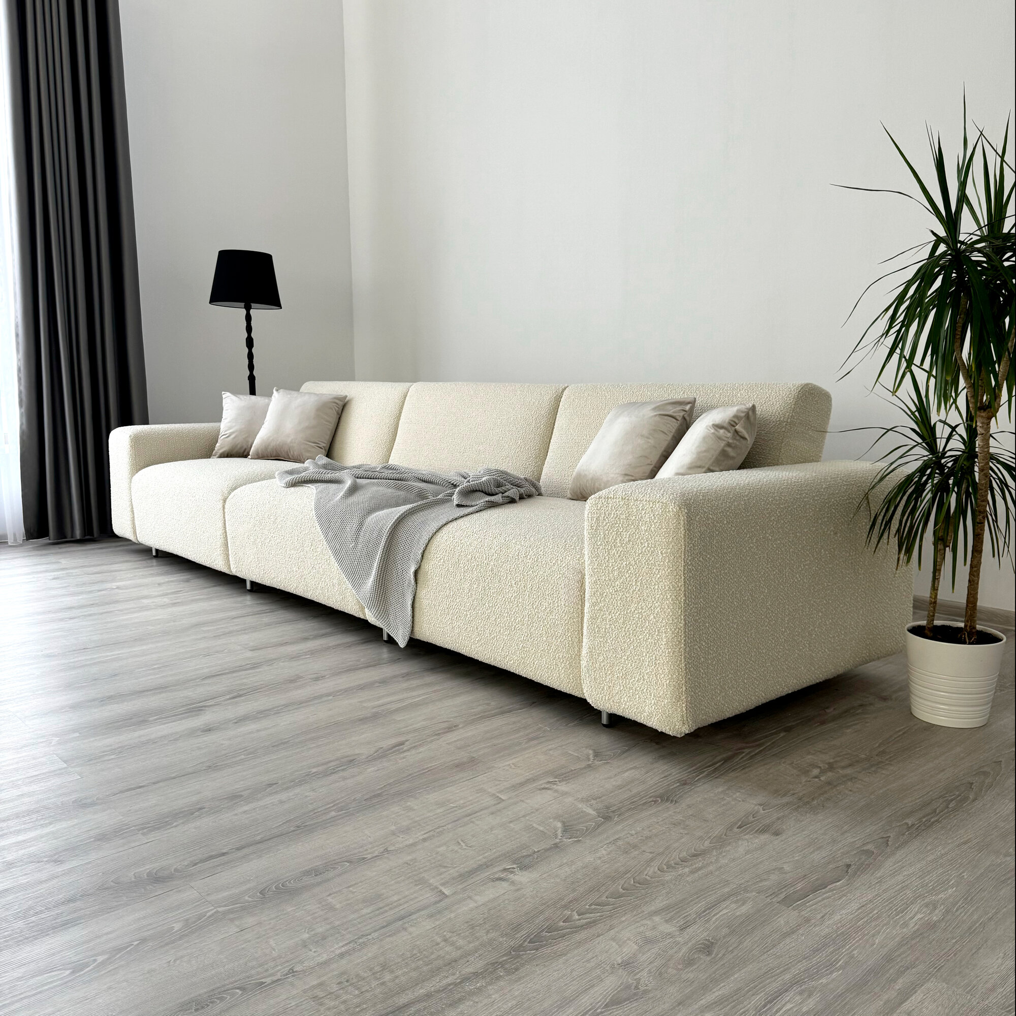 Купить Диван-кровать Redsofa Аурис 360 см белый Букле. Раскладной прямой диван со съемными чехлами, для дома и офиса.