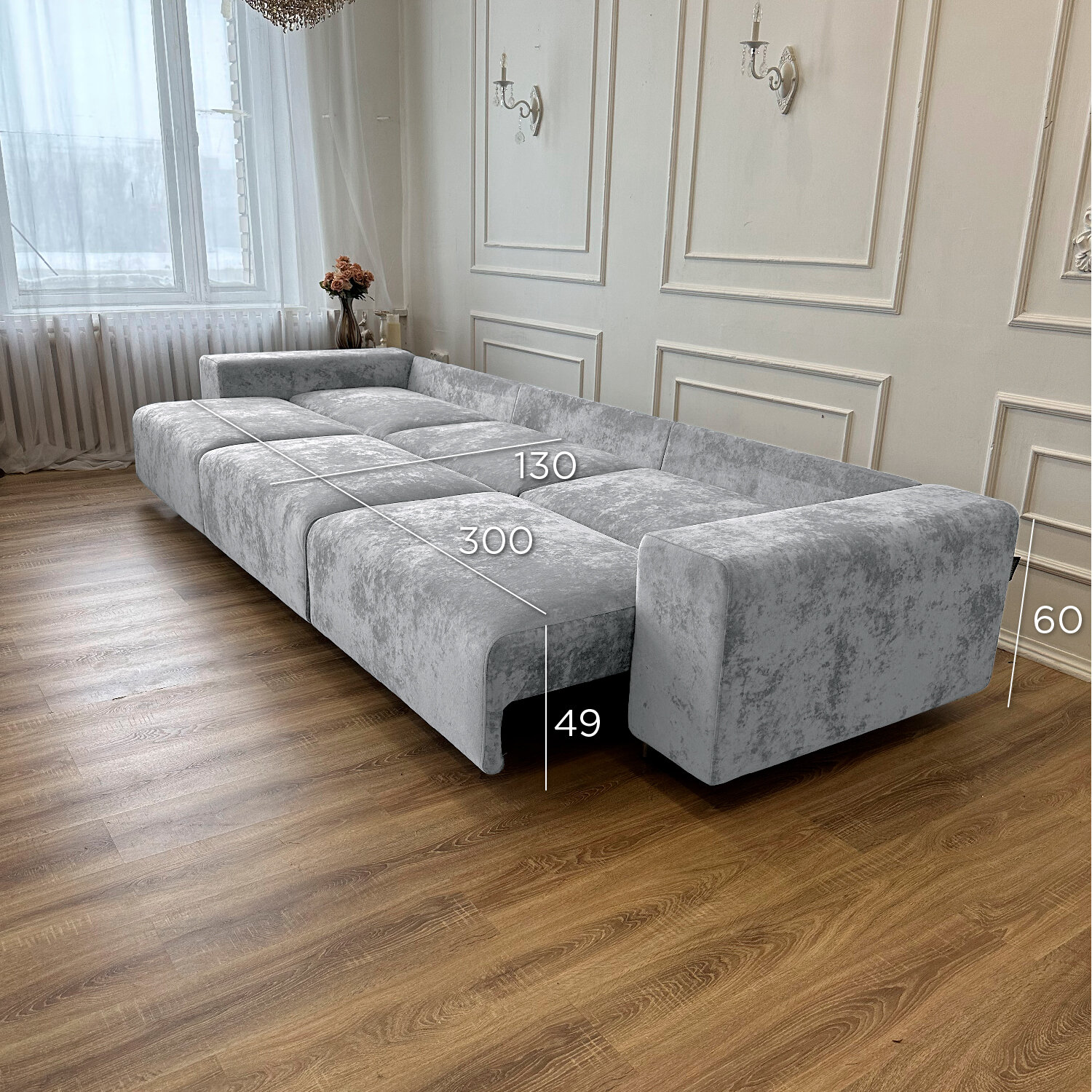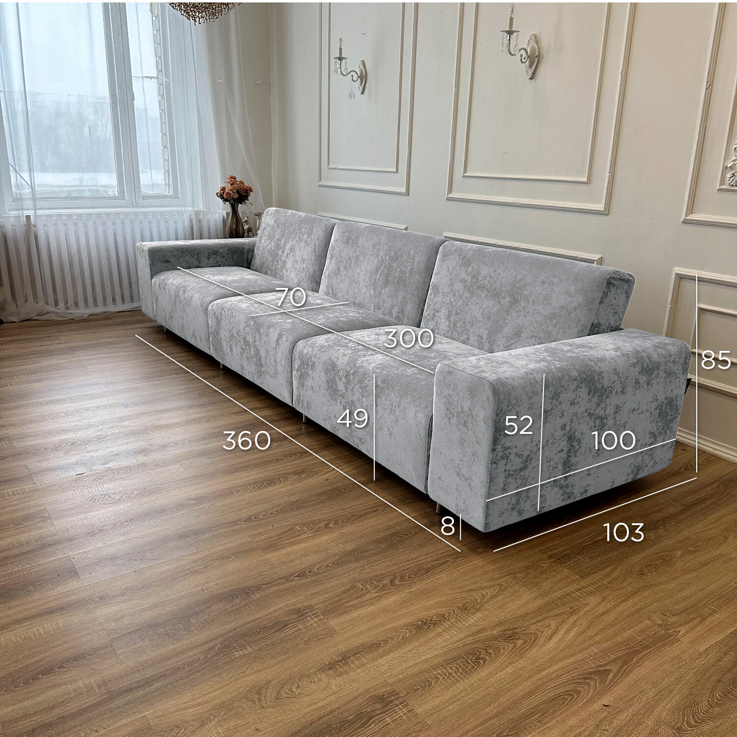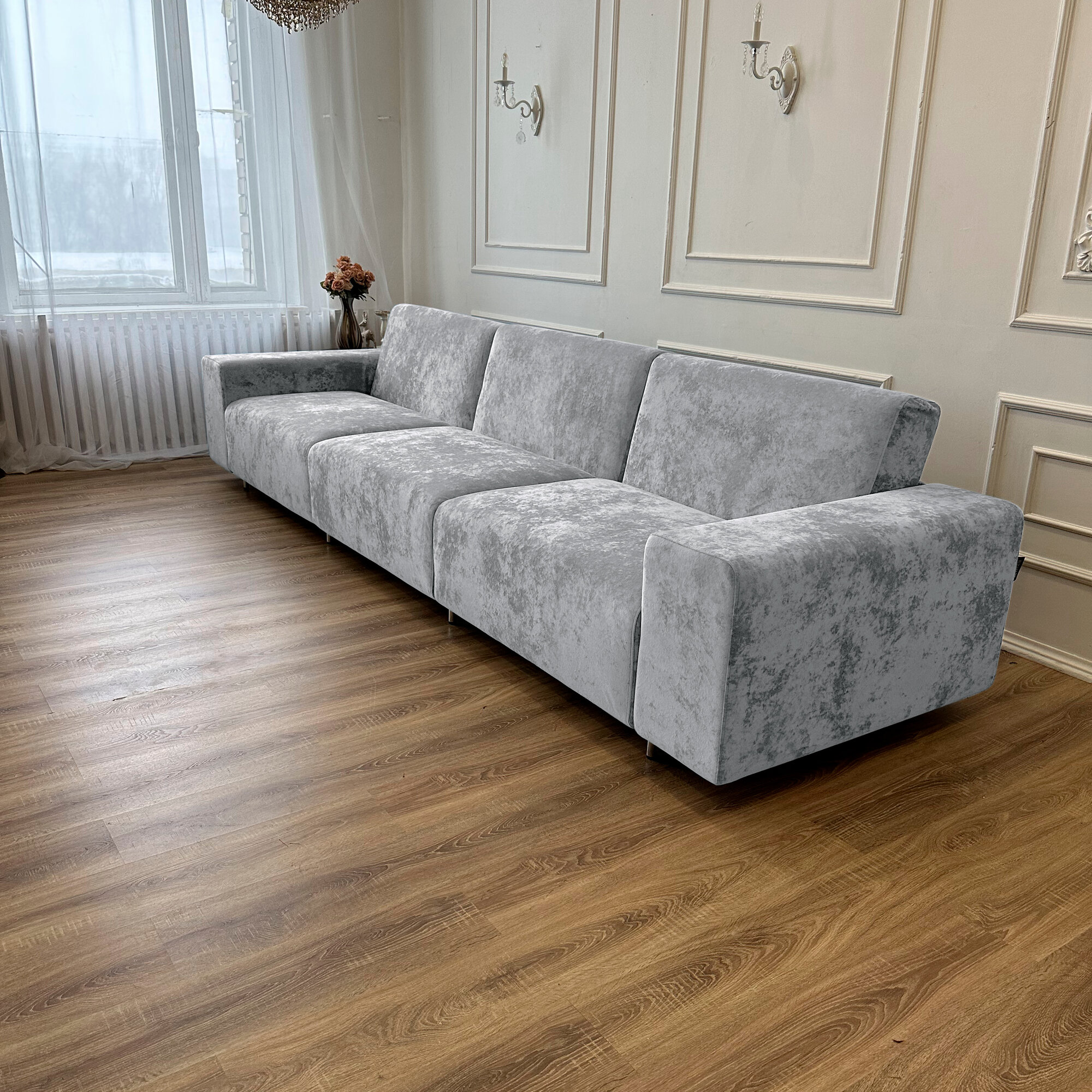 Диван-кровать Redsofa Аурис 360 см серебристый Ocean. Раскладной прямой диван со съемными чехлами, для дома и офиса.