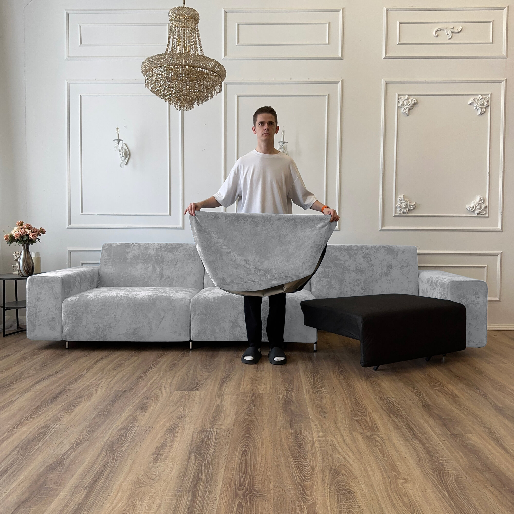 Диван-кровать Redsofa Аурис 360 см серый Teddi. Раскладной прямой диван со съемными чехлами, для дома и офиса.