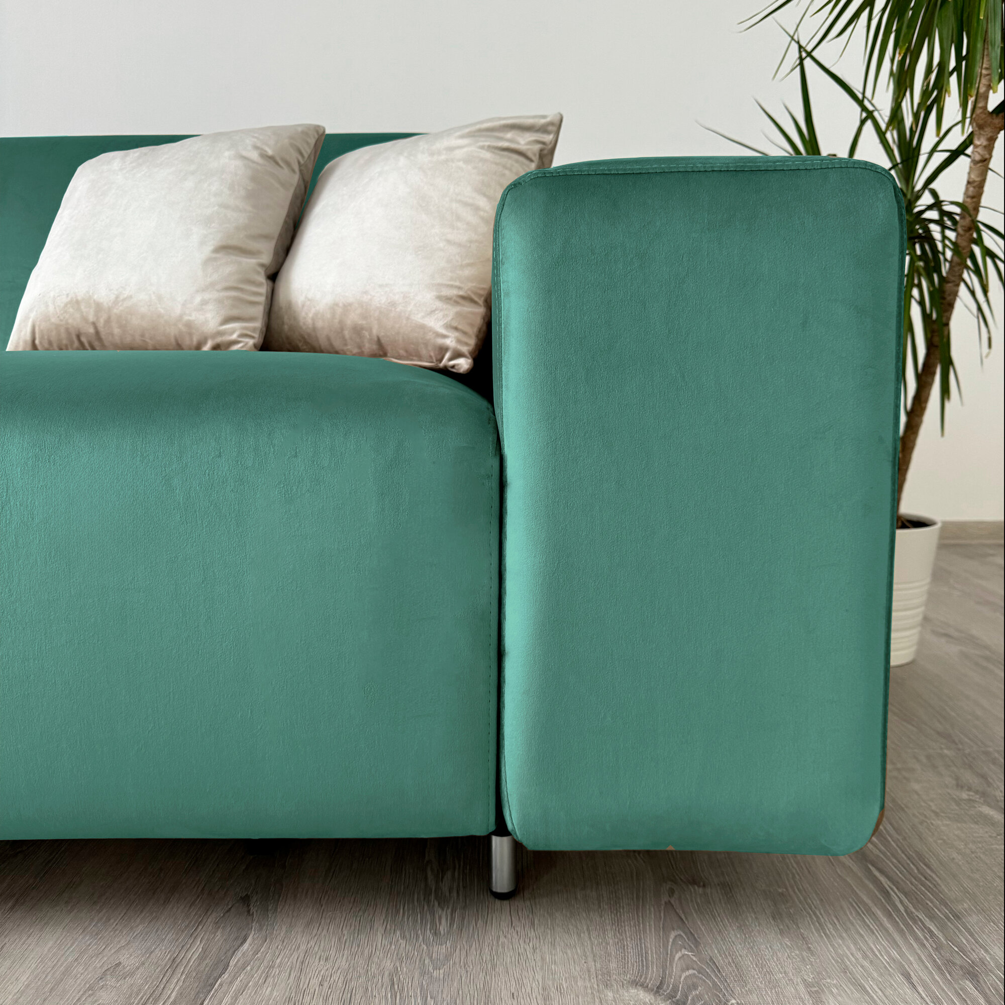 Диван-кровать Redsofa Аурис 360 см изумрудный антивандальный. Раскладной прямой диван со съемными чехлами Редсофа, для дома и офиса.