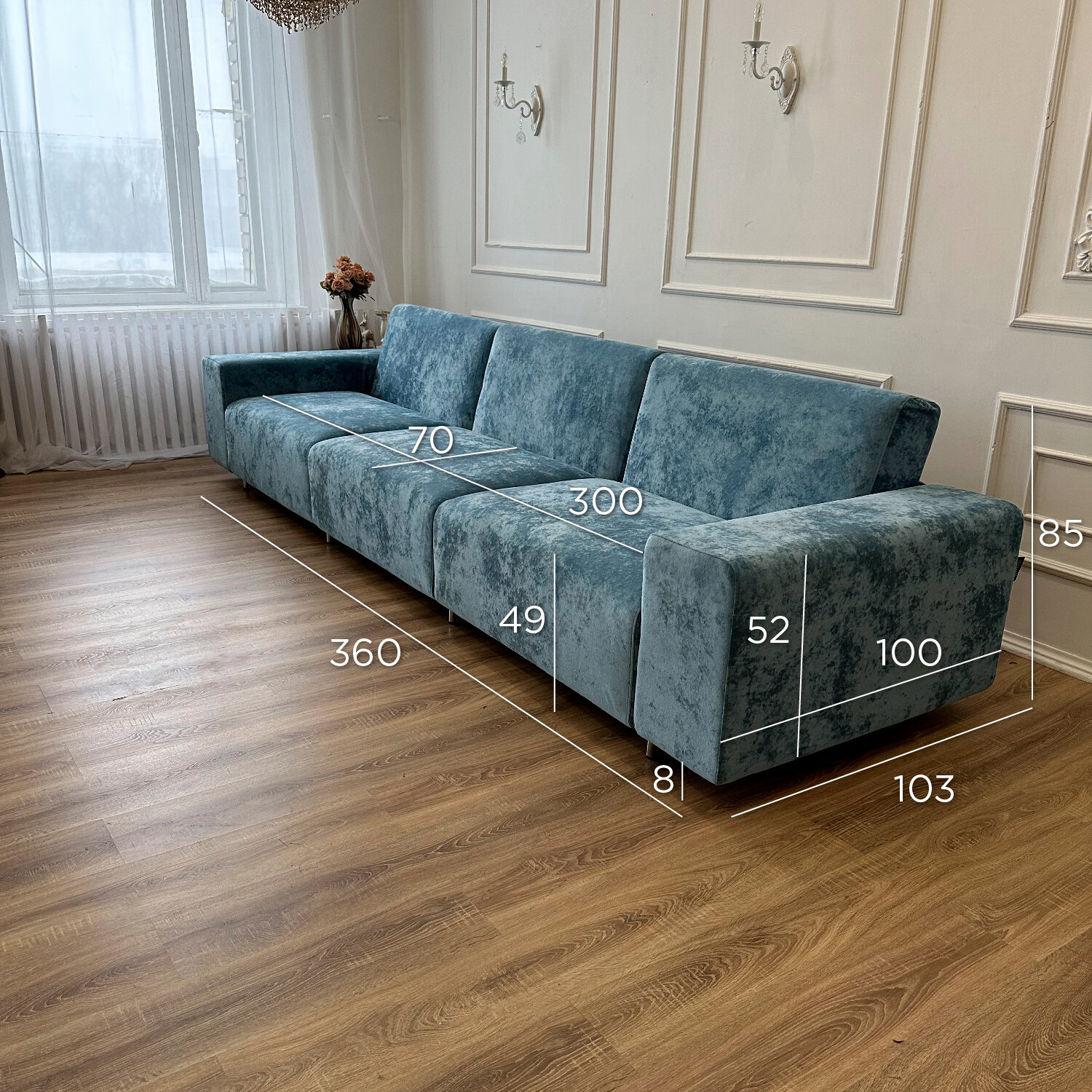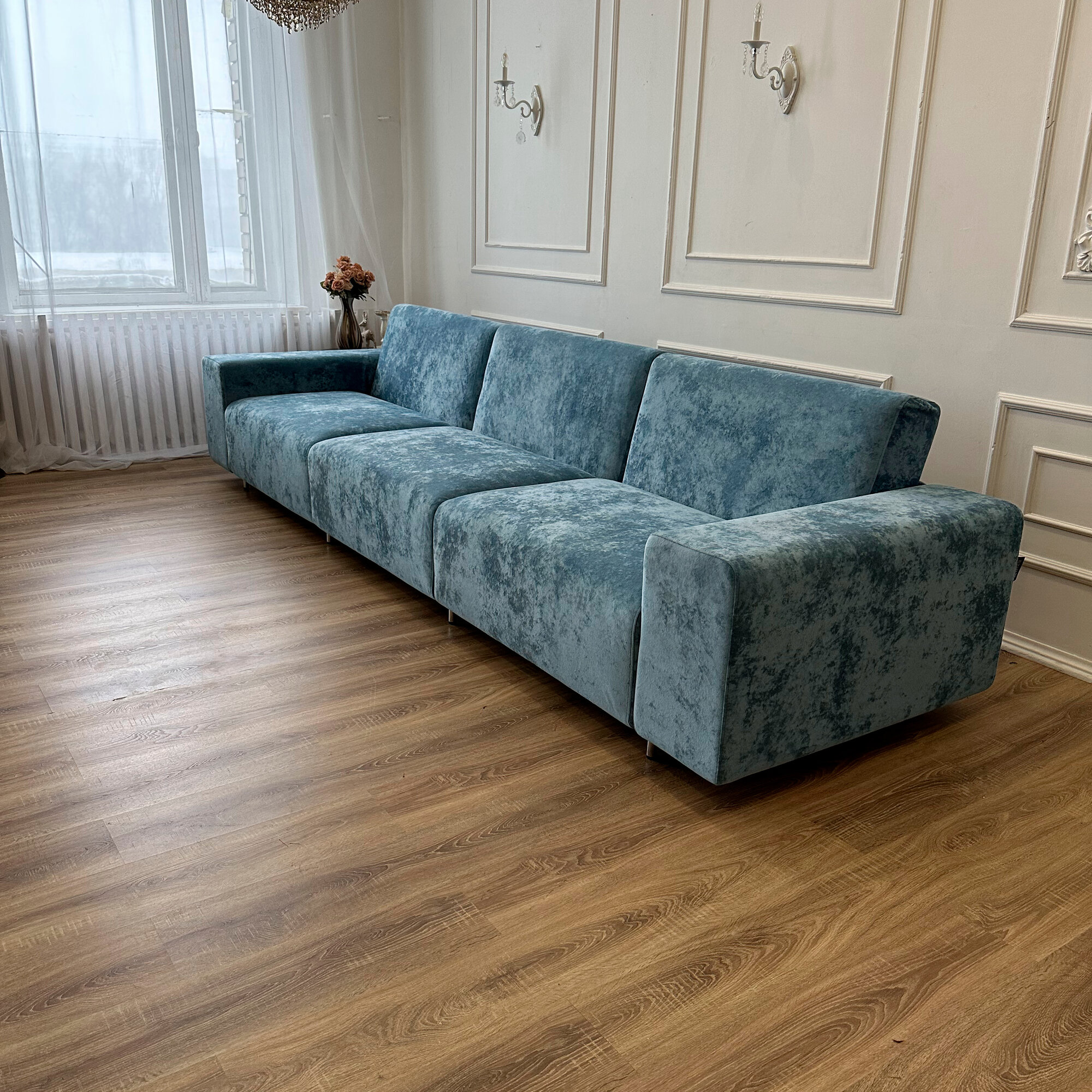 Купить Диван-кровать Redsofa Аурис 360 см голубой Ocean. Раскладной прямой диван со съемными чехлами, для дома и офиса.