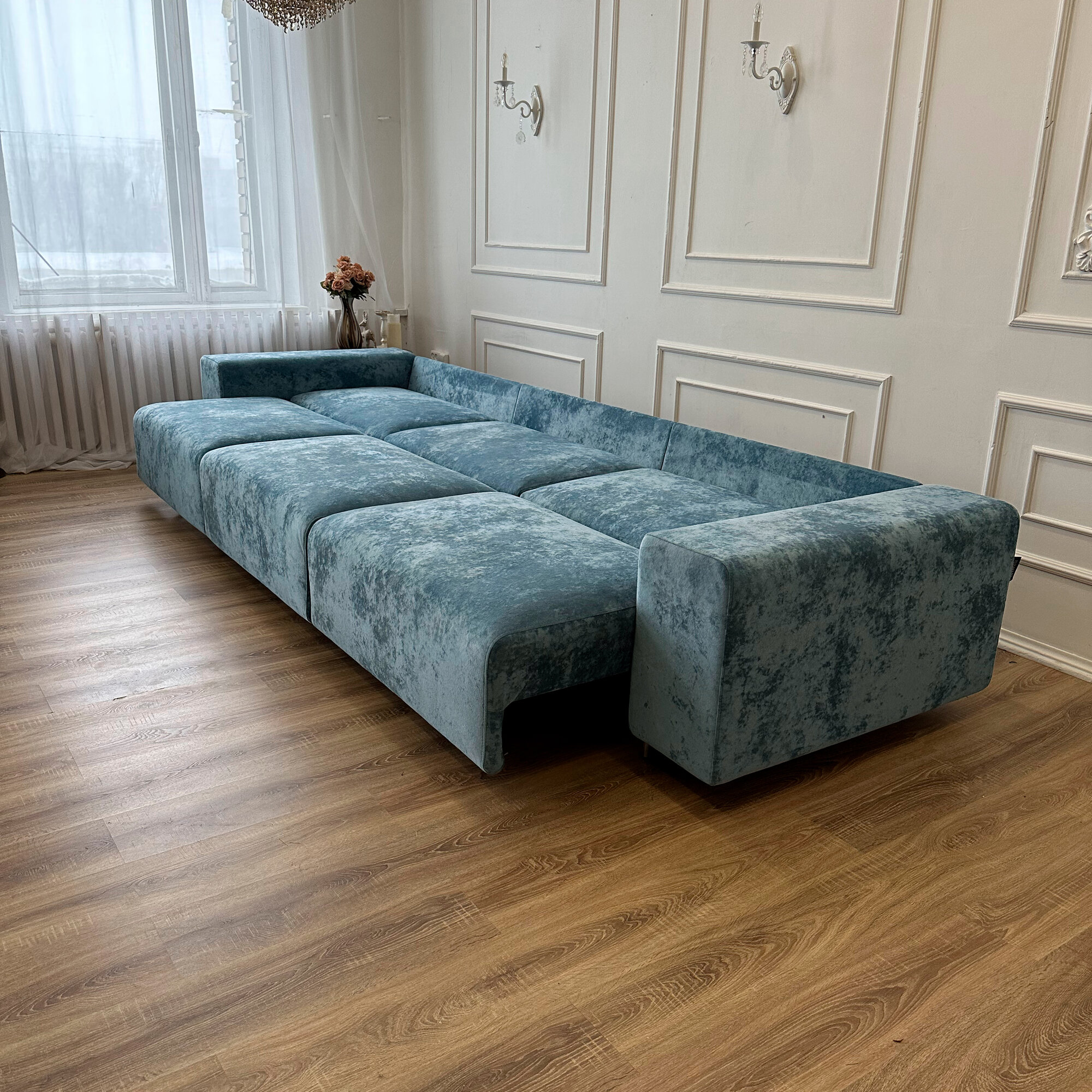 СохранитьДиван-кровать Redsofa Аурис 360 см голубой Ocean. Раскладной прямой диван со съемными чехлами, для дома и офиса. интересное: