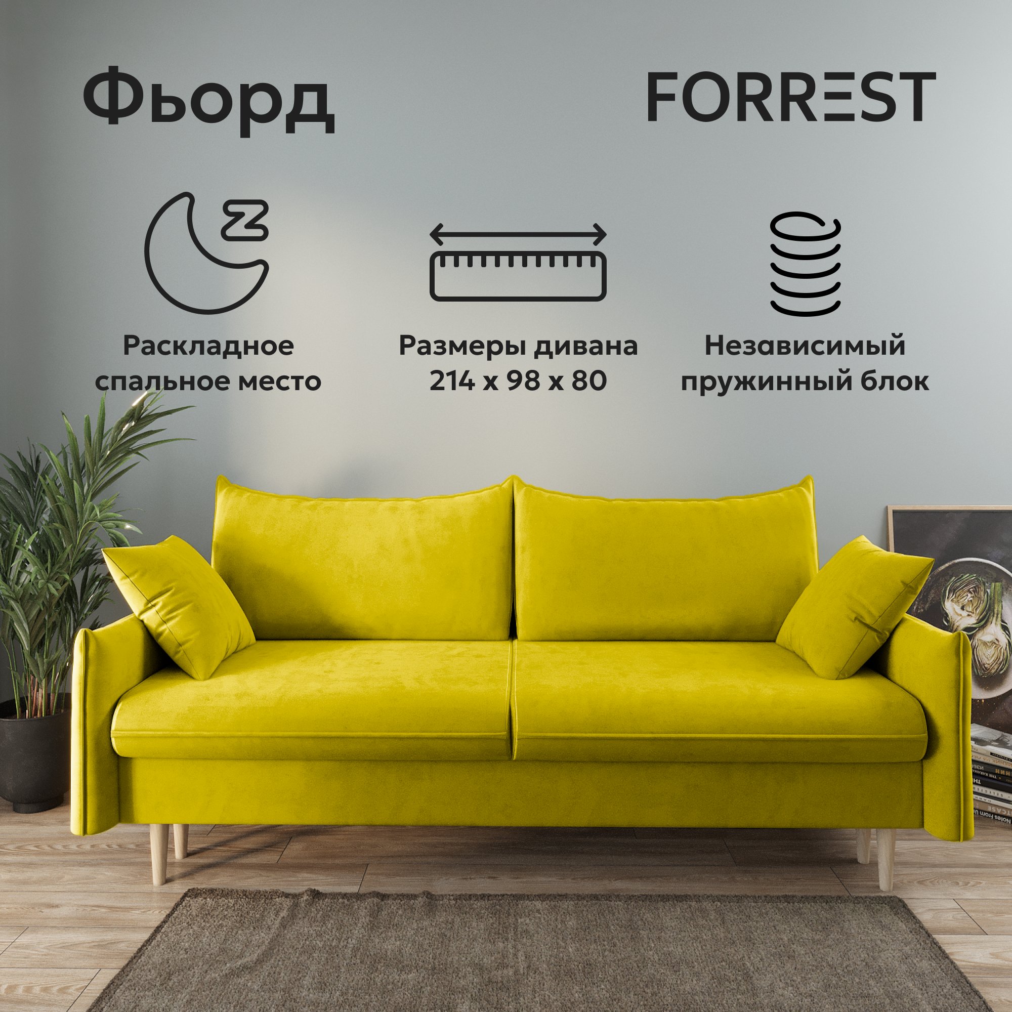 Купить Диван-кровать Фьорд желтый, Независимый Пружинный Блок, механизм Тик-так, 212х96х80 см, Спальное место 147х198 см