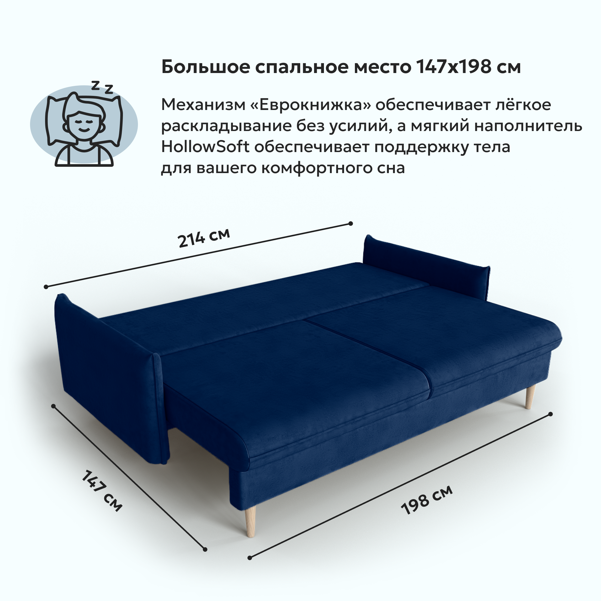 СохранитьДиван-кровать Фьорд синий, Независимый Пружинный Блок, механизм Тик-так, 212х96х80 см, Спальное место 147х198 см интересное: