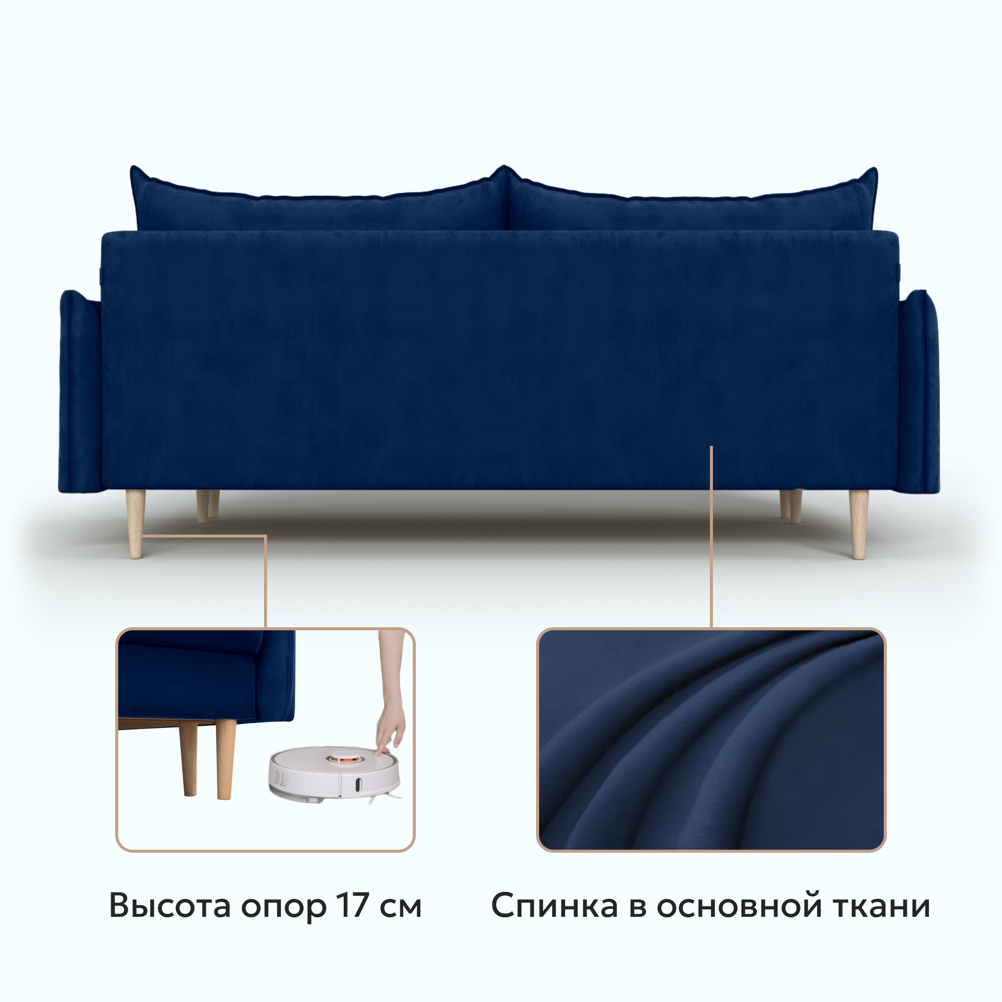 Купить Диван-кровать Фьорд синий, Независимый Пружинный Блок, механизм Тик-так, 212х96х80 см, Спальное место 147х198 см