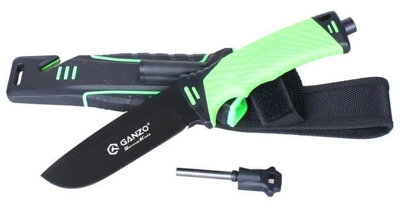 Нож выживания с огнивом Ganzo G8012, зелёный
