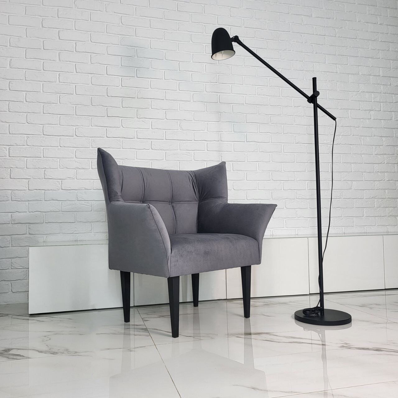 Кресло " Бьянка ", велюр, серый, 89 см x 60 см x 97 см , каркас из фанеры