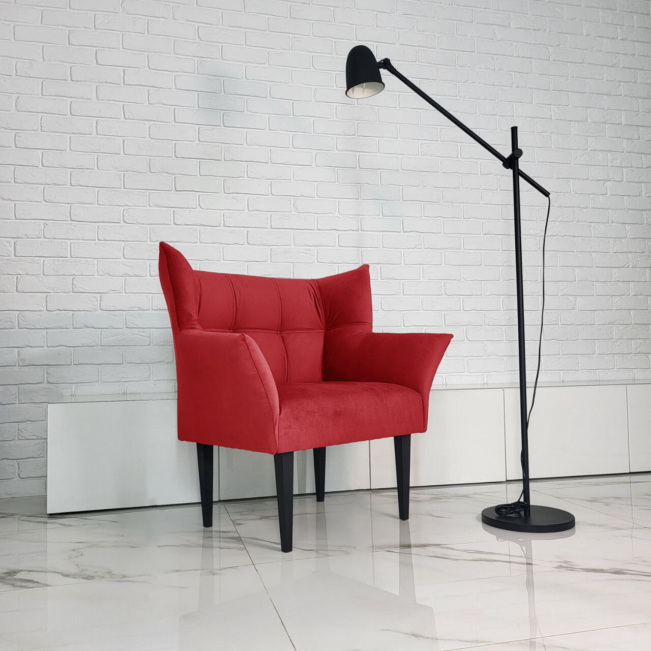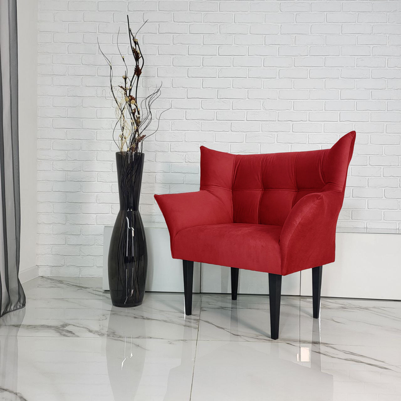 Кресло " Бьянка ", велюр, красный, 89 см x 60 см x 97 см , каркас из фанеры