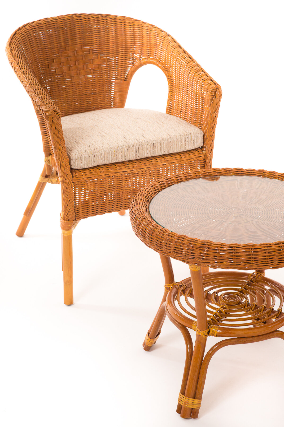 Комплект M-group мамасан, папасан и стол без ротанга белое бежевая подушка