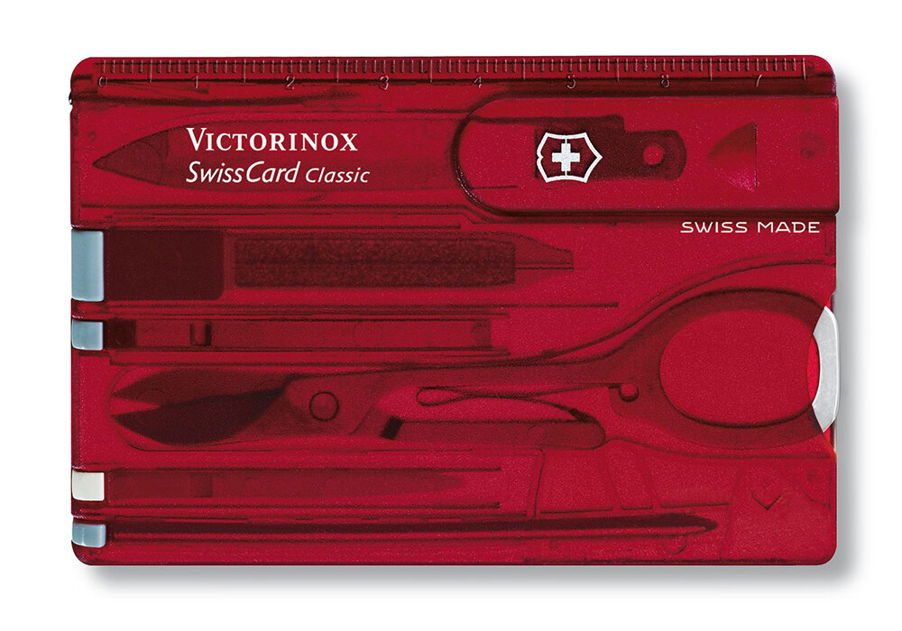 Набор аксессуаров Мультитул швейцарская карта VICTORINOX SwissCard Classic box (0.7100/0.7122/0.7133) красный полупрозрачный