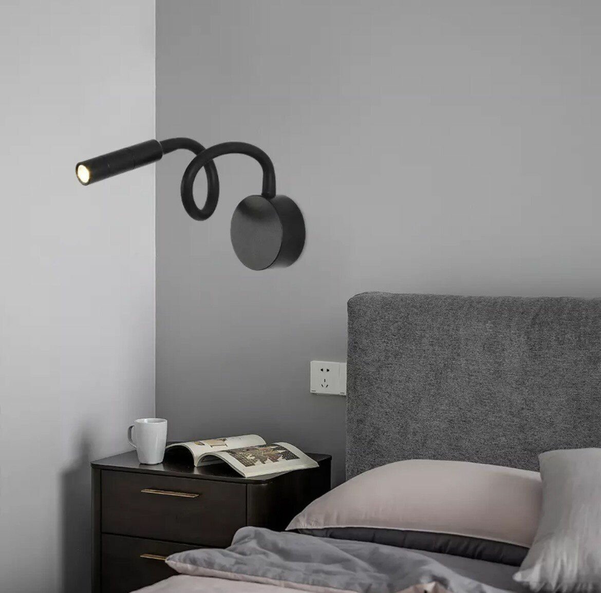Современная светодиодная гибкая настенная лампа с выключателем, Бра металлический для спальни, гостиной, кухни Wogow Черный