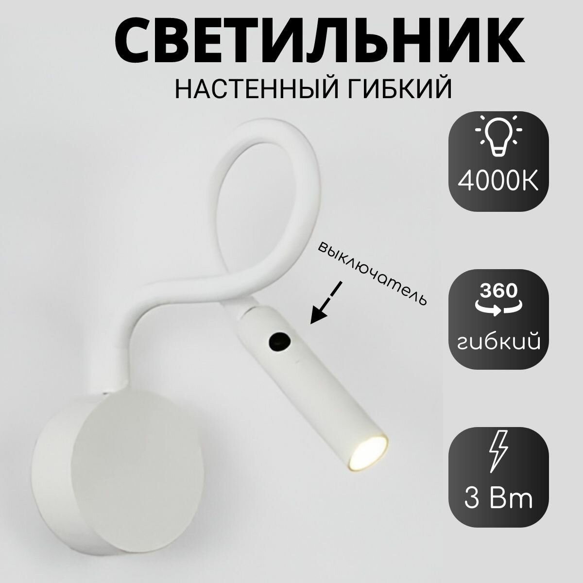 СохранитьСовременная светодиодная гибкая настенная лампа с выключателем, Бра металлический для спальни с нейтральным светом, гостиной, кухни, Без цоколя, 3Вт Белый интересное: