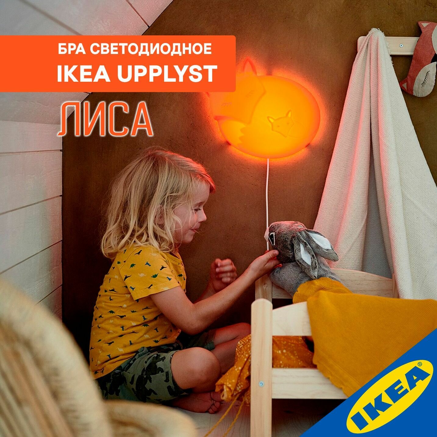 Бра светодиодное для детской IKEA UPPLYST упплист, "лиса",1.6 Вт, оранжевый интересное: