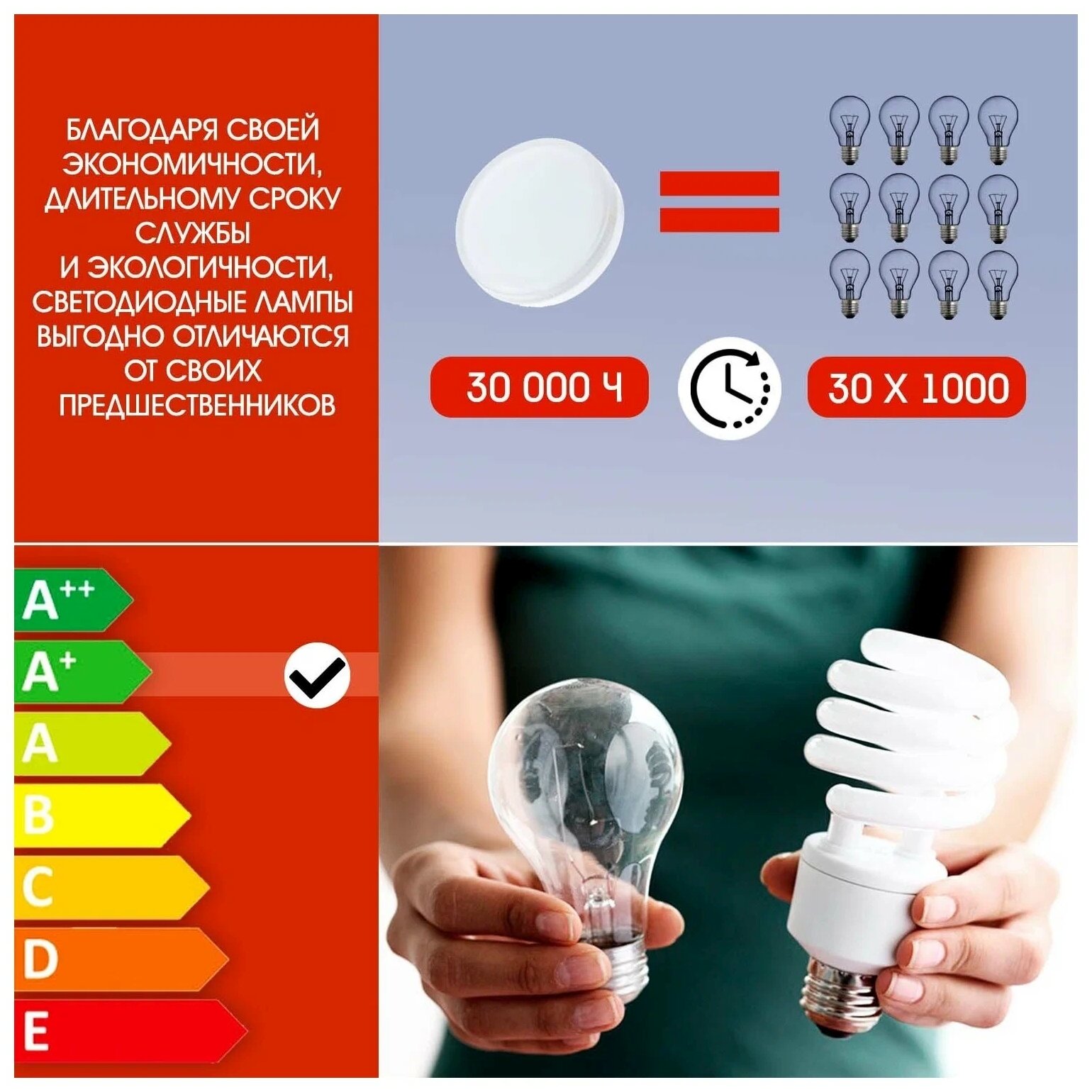 (10 шт.) Светодиодная лампочка SmartBuy GX53 св/д 8W(650lm) 4100K 4K 75x29 матов. пластик SBL-GX-8W-4K Нейтральный белый. Цоколь GX53