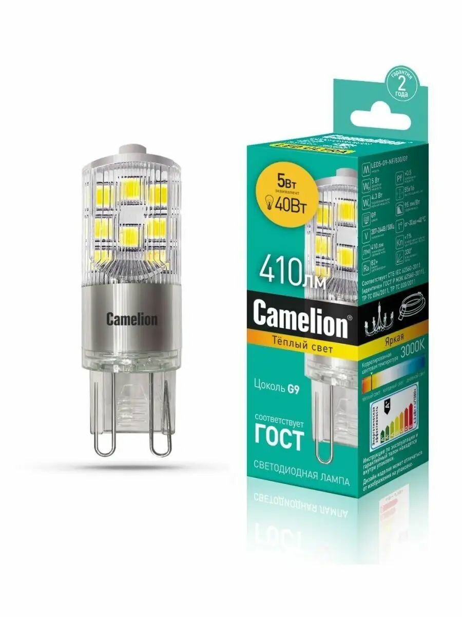 Набор из 5 светодиодных лампочек Camelion LED5-G9-NF/830/G9 интересное: