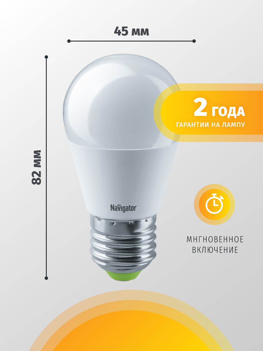 Лампа светодиодная 94 479 NLL-P-G45-5-230-4K-E27 | код. 94479 | Navigator (5шт. в упак.)