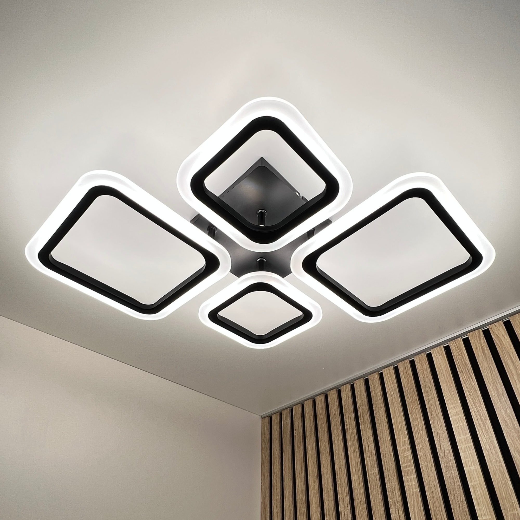 Люстра с пультом светодиодная потолочная, 72W, 4 лампы, ромбы, черная, LEDCITY интересное: