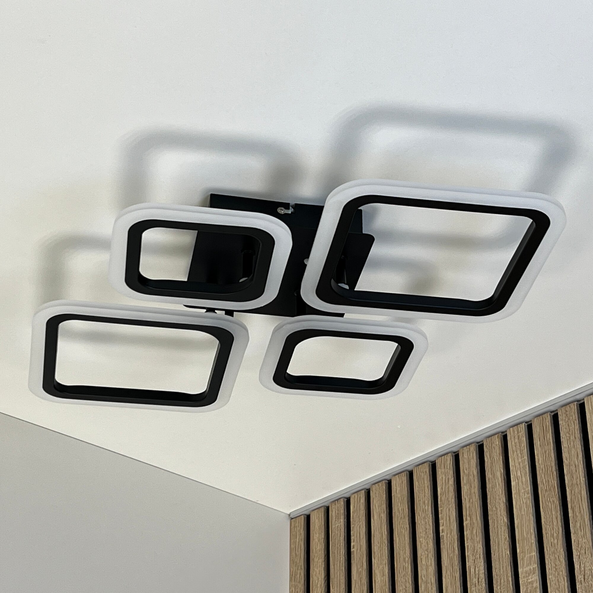 Купить Люстра с пультом светодиодная потолочная, 72W, 4 лампы, ромбы, черная, LEDCITY