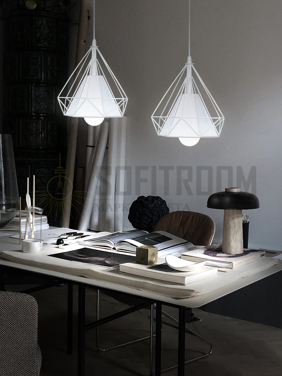 Подвесной светильник лофт Sofitroom Piramid Loft, светильник потолочный подвесной, люстра потолочная подвесная, подвесной светильник белый