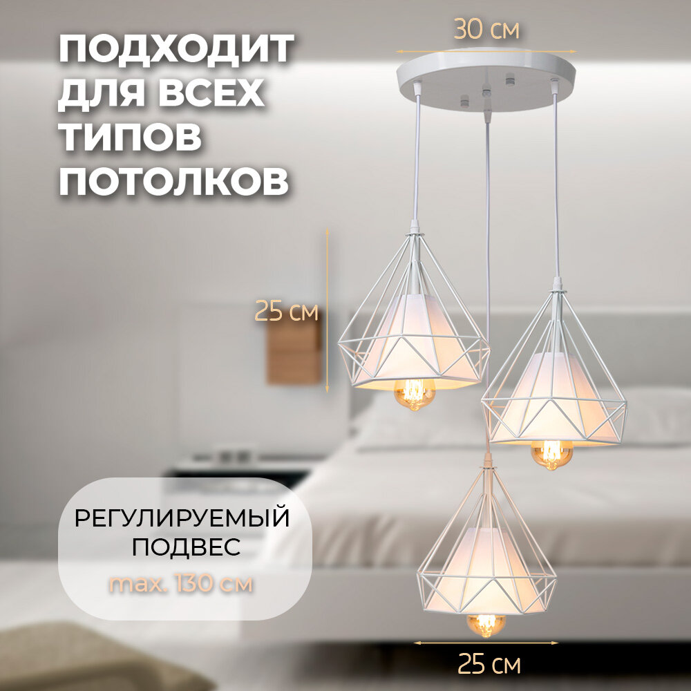 СохранитьПодвесной светильник Sofitroom Piramid White Лофт 3 светильника, люстра потолочная подвесная, подвесной светильник белый интересное: