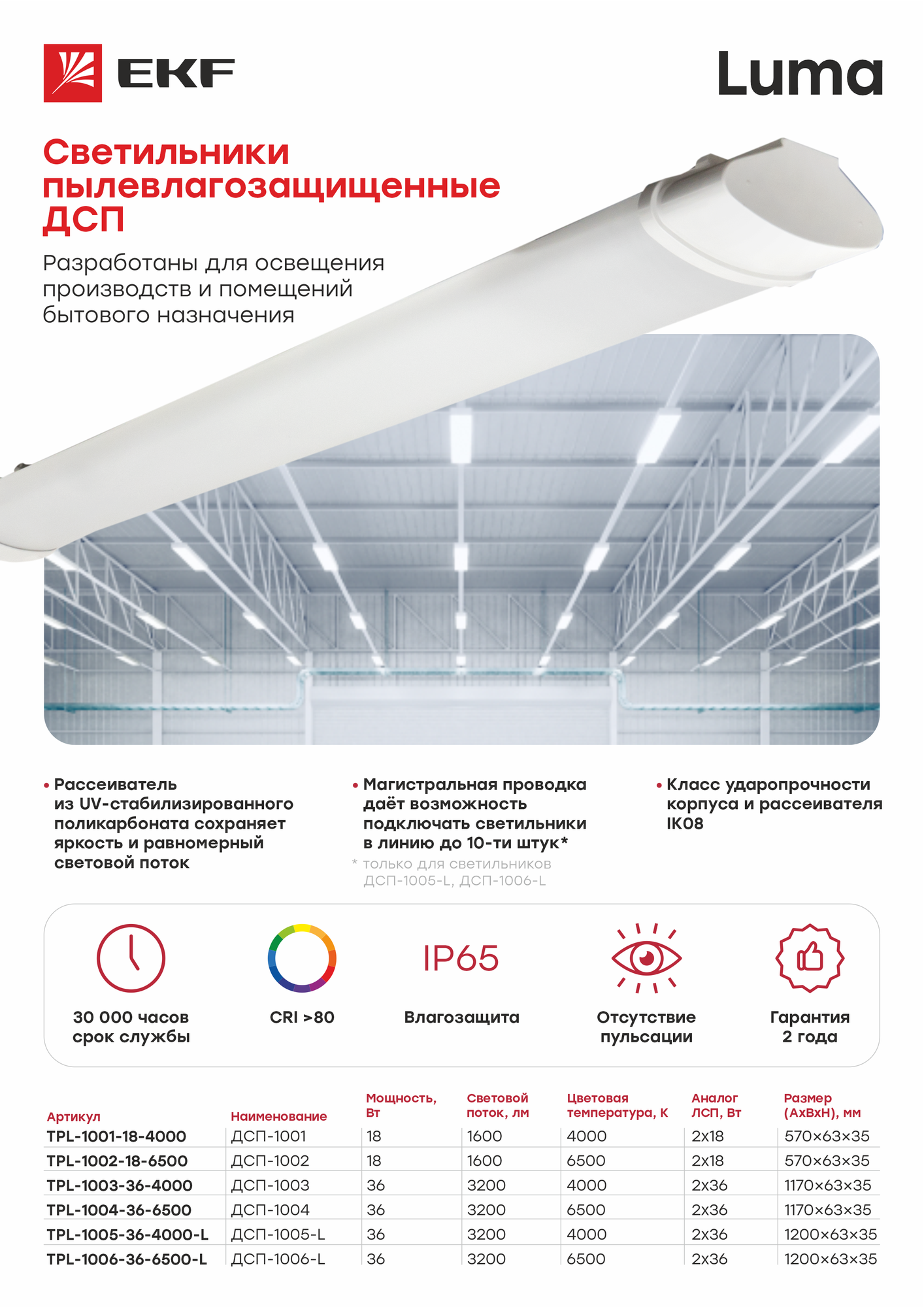 Светильник светодиодный пылевлагозащищенный ДСП-1003 36Вт 4000К IP65 1200мм EKF PROxima интересное: