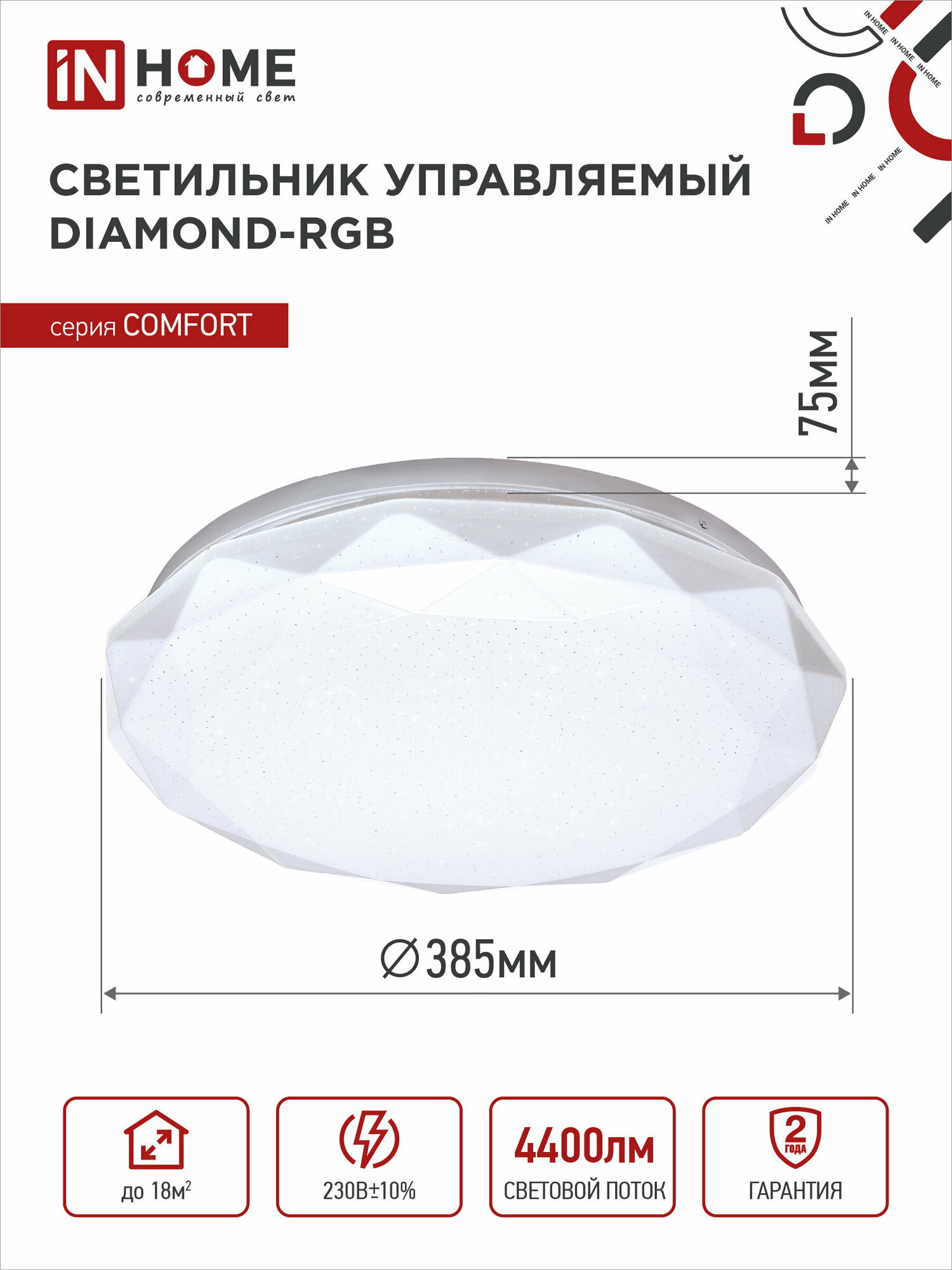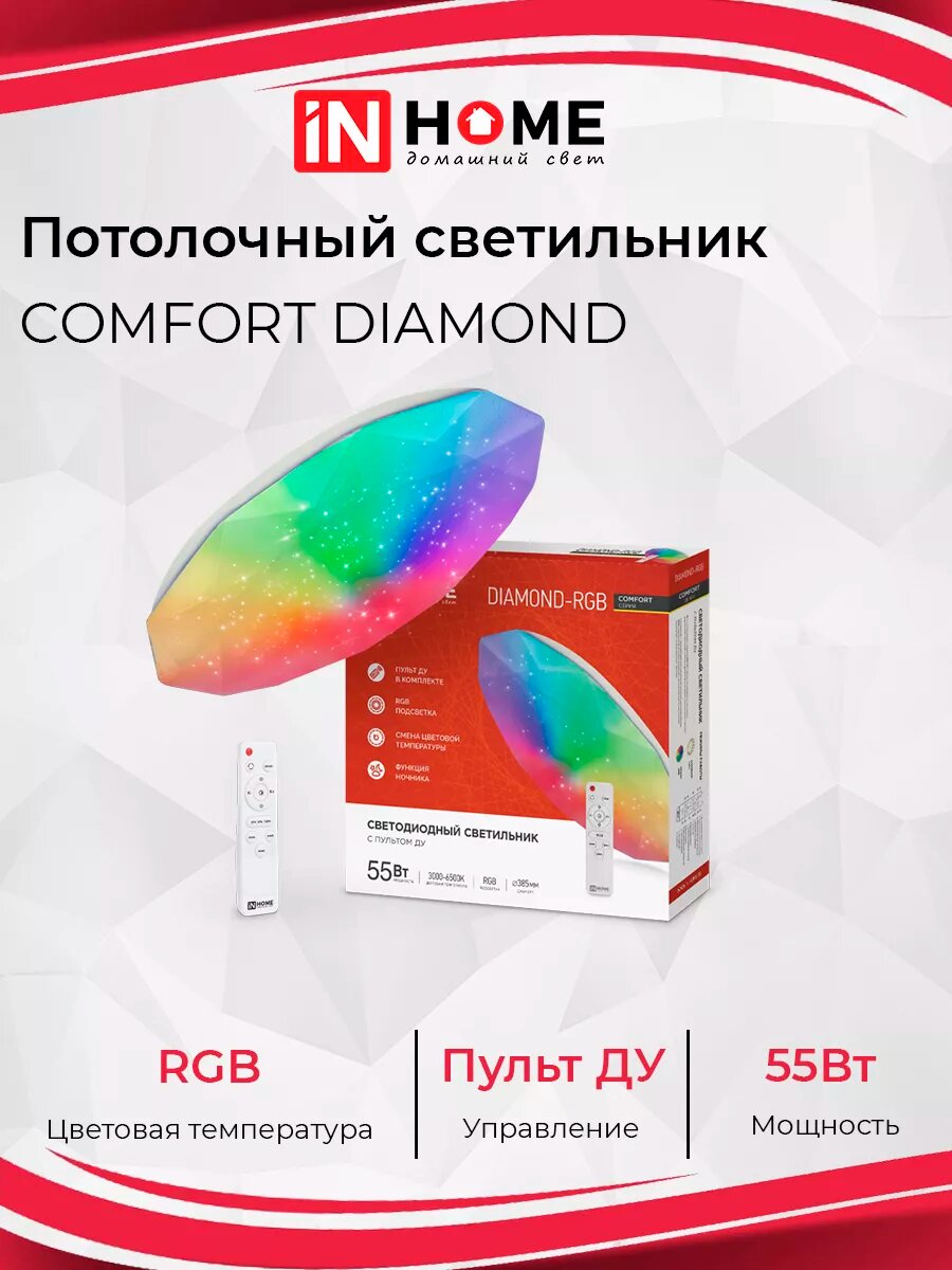 Купить Светильник светодиодный IN Home COMFORT DIAMOND-RGB 55Вт 230В 3000-6500К 4400лм 385х75мм с пультом ДУ 4690612044576
