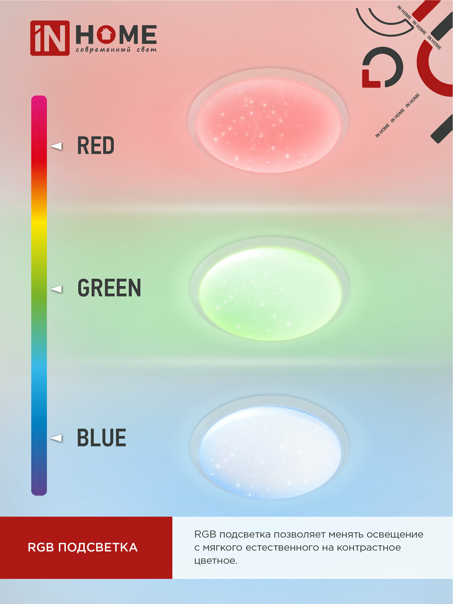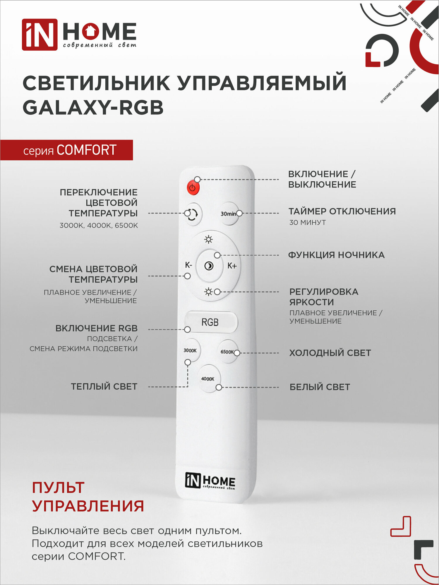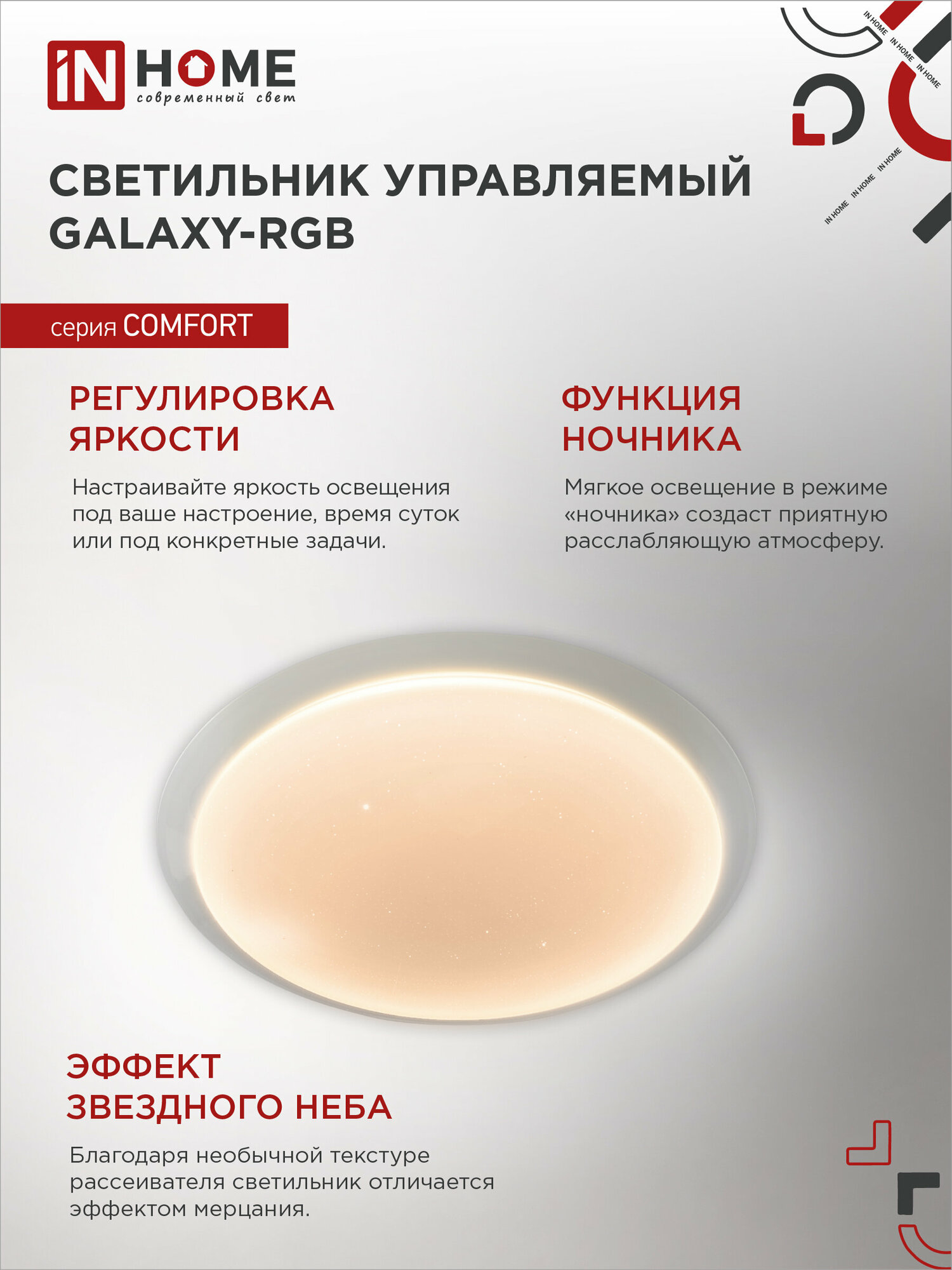 Светильник светодиодный COMFORT MYSTERY, RGB подсветка, 75Вт 230В 3000-6500К 6000лм, пульт ДУ, IN HOME