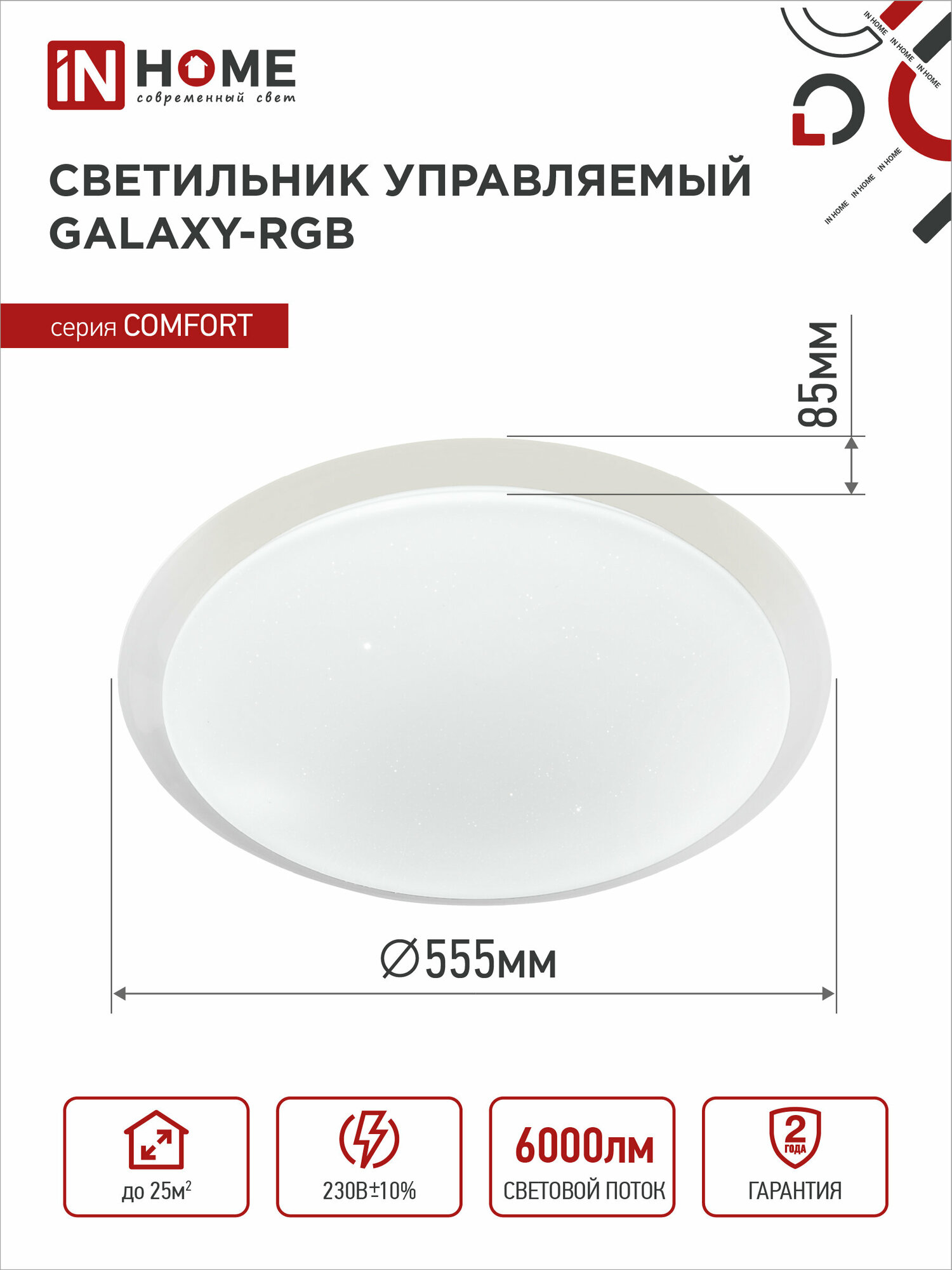 ASD/inHome св-к св/д управляемый 55W(4400lm) 2K-4K-6K d450x70 пульт ДУ COMFORT GALAXY-RGB 4606
