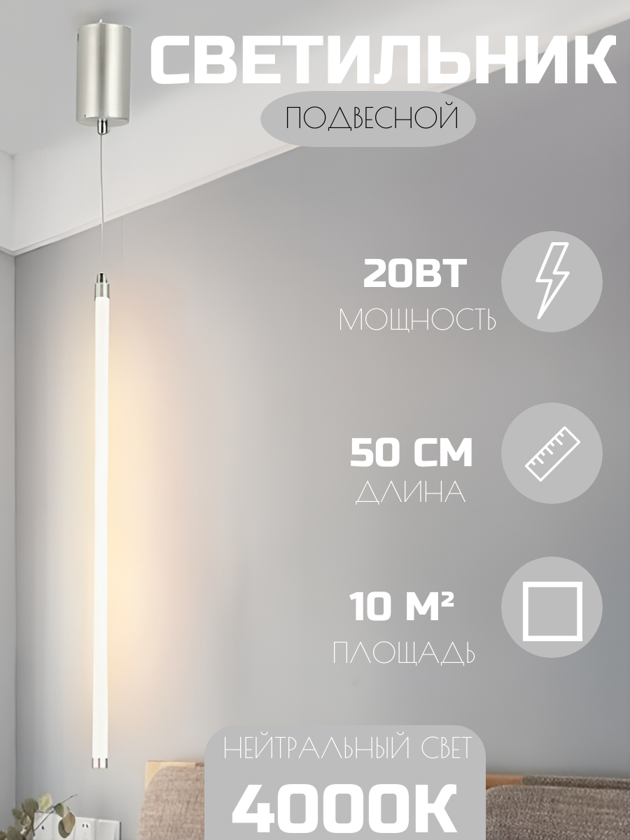 Купить Современный светодиодный длинный трубчатый светильник Подвесной светильник 50 см Серебро