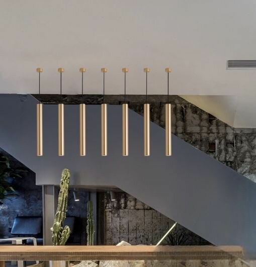 Современный светодиодный длинный подвесной светильник Труба 50 см Золото