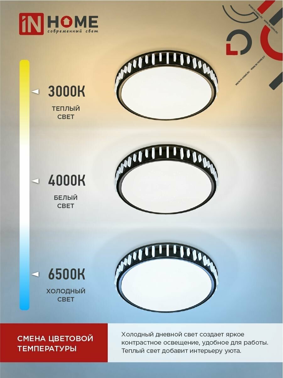 Светильник светодиодный COMFORT ASTERA 75Вт 230В 3000-6500К 6000лм 500х100мм с пультом ДУ IN HOME 4690612035727 (1 шт.)