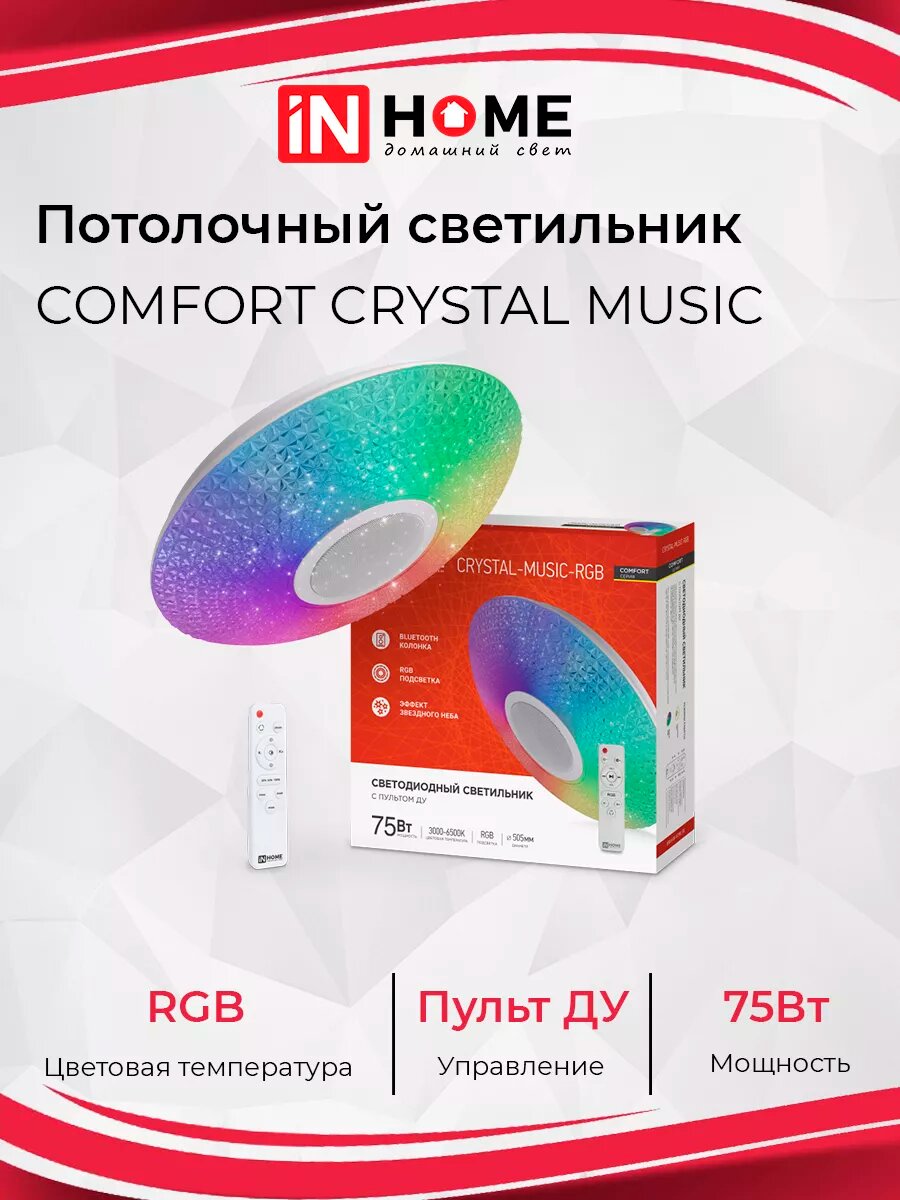 Купить Светильник сд COMFORT CRYSTAL-MUSIC-RGB 75Вт 230В 3000-6500K 6000Лм 505x125мм с пультом ДУ IN HOME (арт.4690612044569)