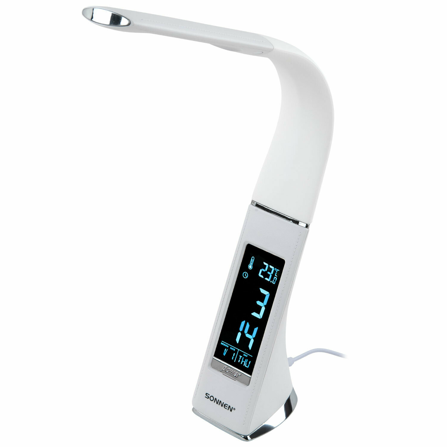 Купить Лампа настольная, светильник на рабочий стол светодиодный, для школьника, офиса и дома Sonnen Sm-01w на подставке, Lсd-экран, 5 Вт, белый, 238233