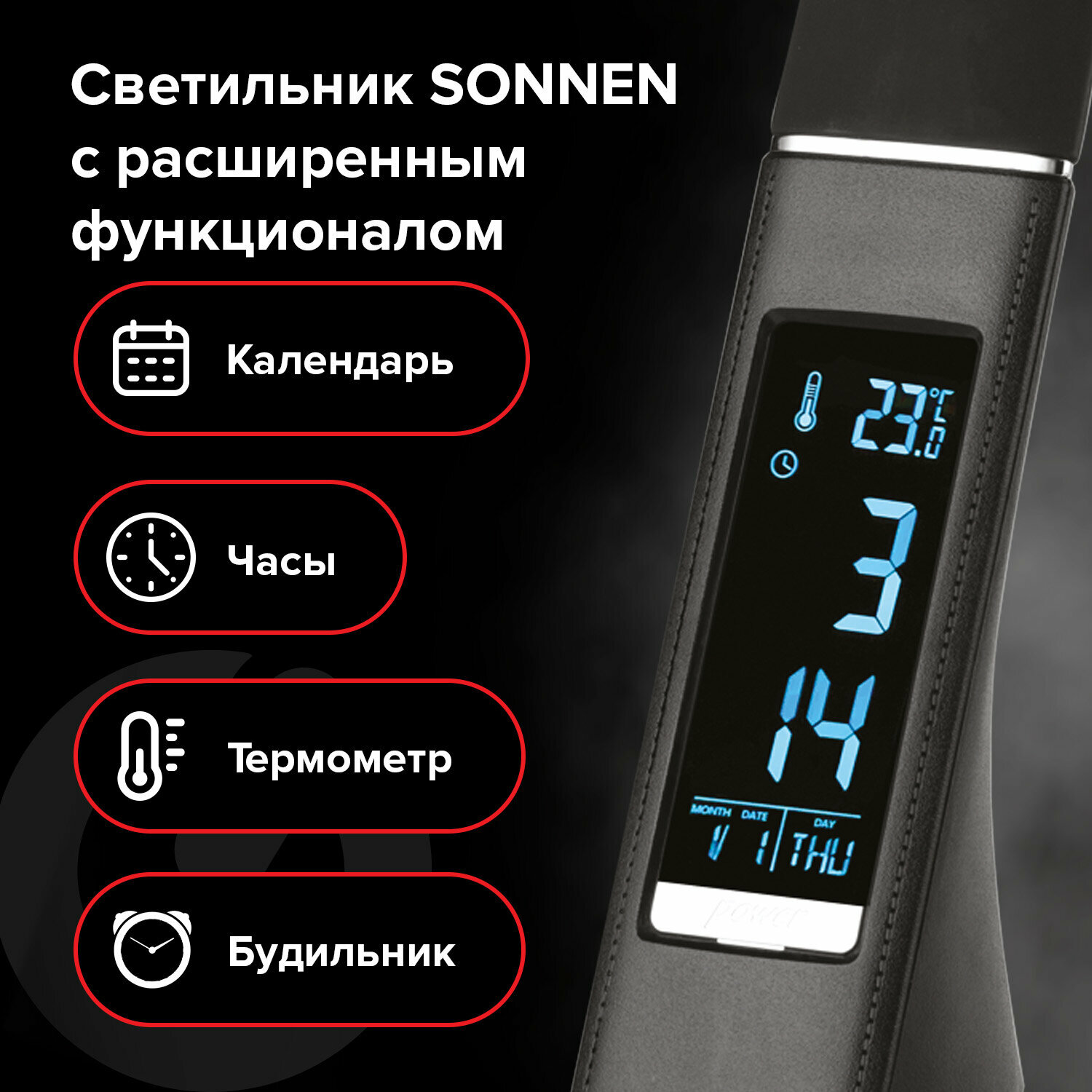 Лампа настольная, светильник на рабочий стол светодиодный, для школьника, офиса и дома Sonnen Sm-01b на подставке, Lсd-кран, 5 Вт, черный, 238232 интересное: