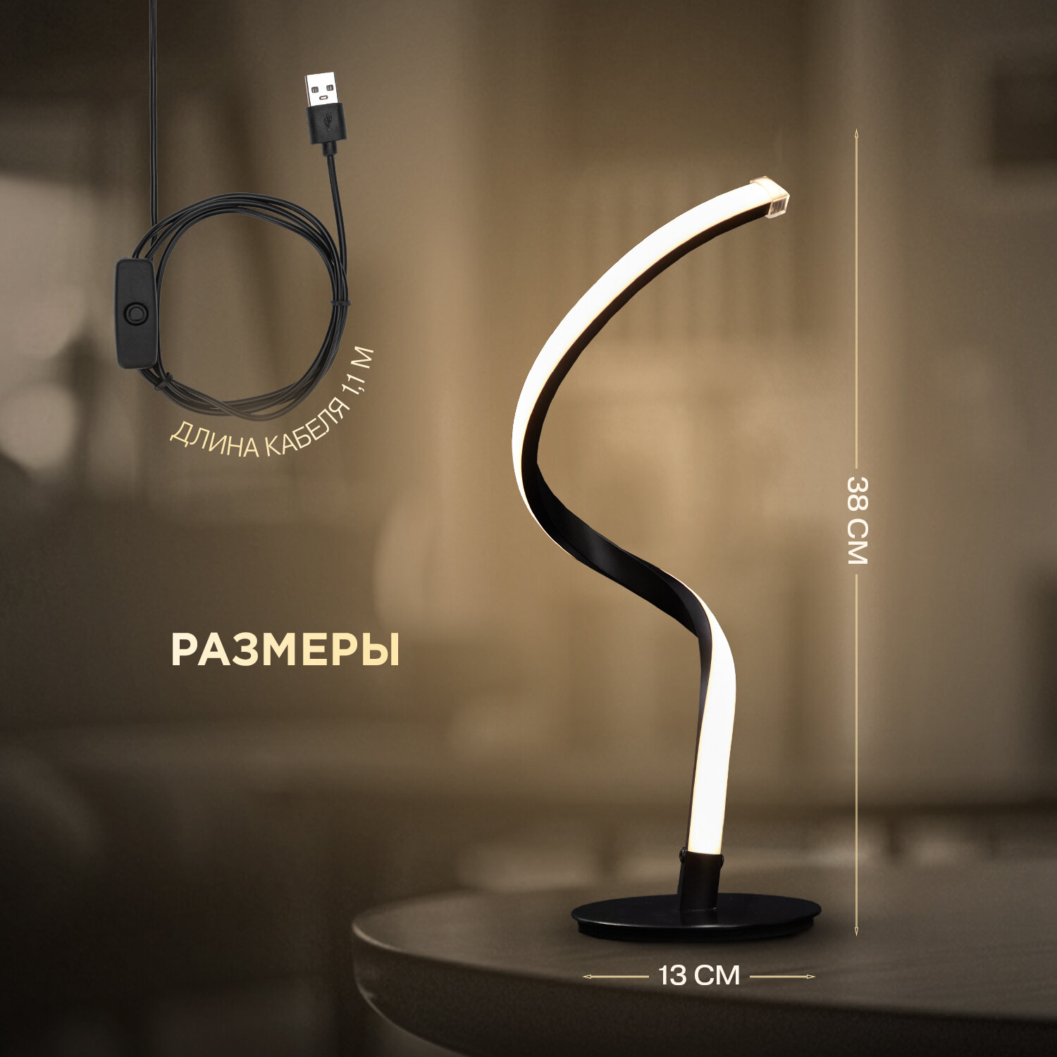 СохранитьНастольный светильник REXANT Spiral Trio, черный ночник для спальни и гостиной, прикроватная LED лампа, USB питание интересное: