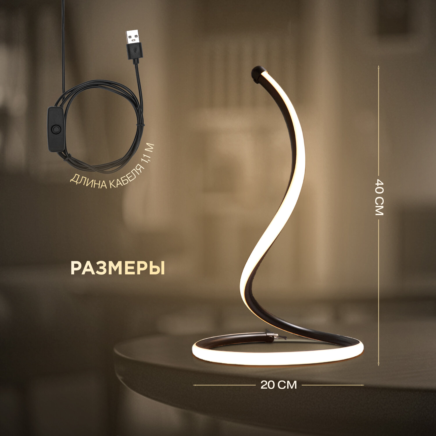 Светильник настольный декоративный Спираль LED REXANT USB