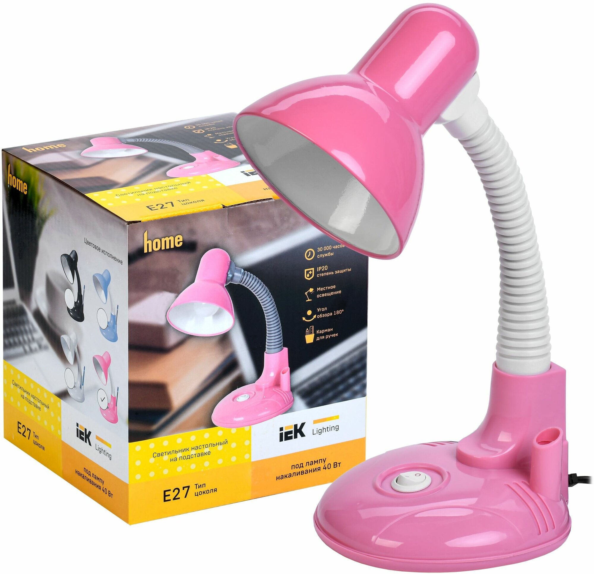 Светильник настольный IEK 1005 с кармашком, Е27, розовый интересное: