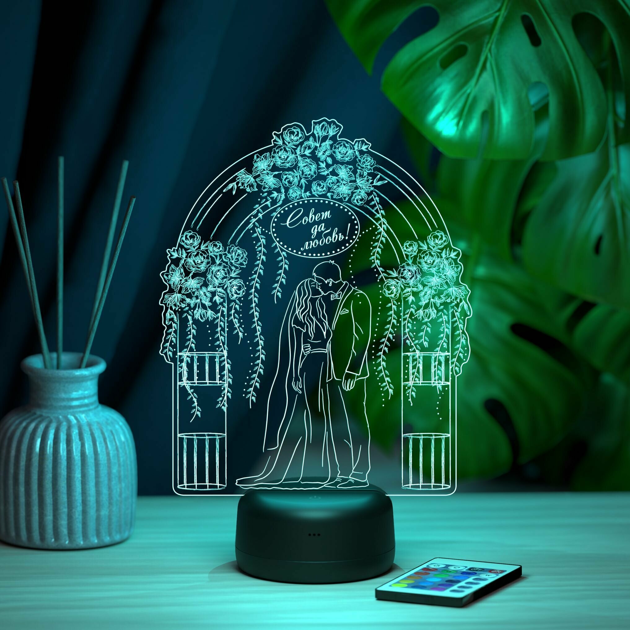 Ночник "Свадебная пара в цветах" С Днем Свадьбы