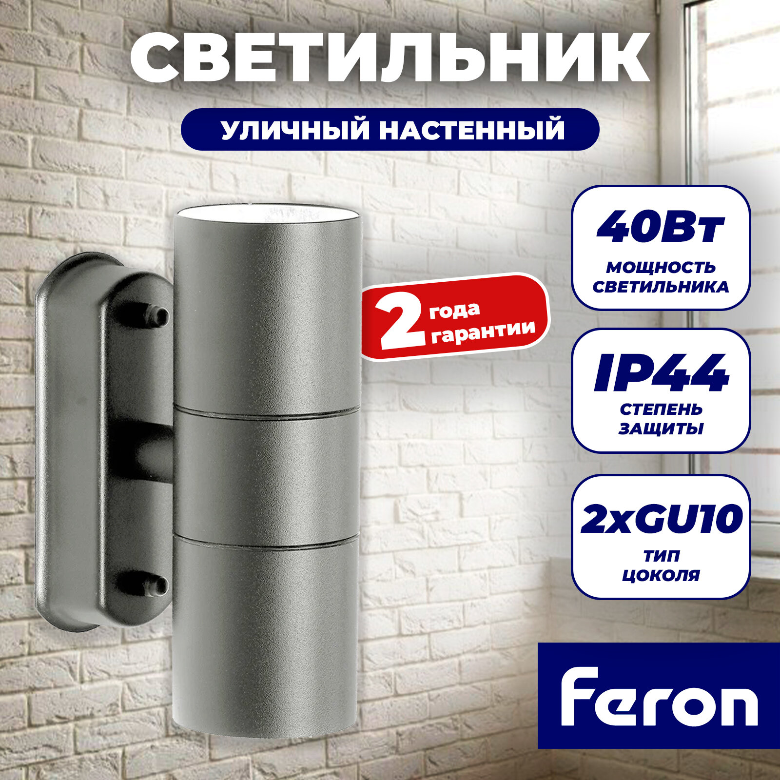 Светильник садово-парковый DH0704,на стену, 2*GU10 230V, серый, FERON 11882 (1 шт.) интересное: